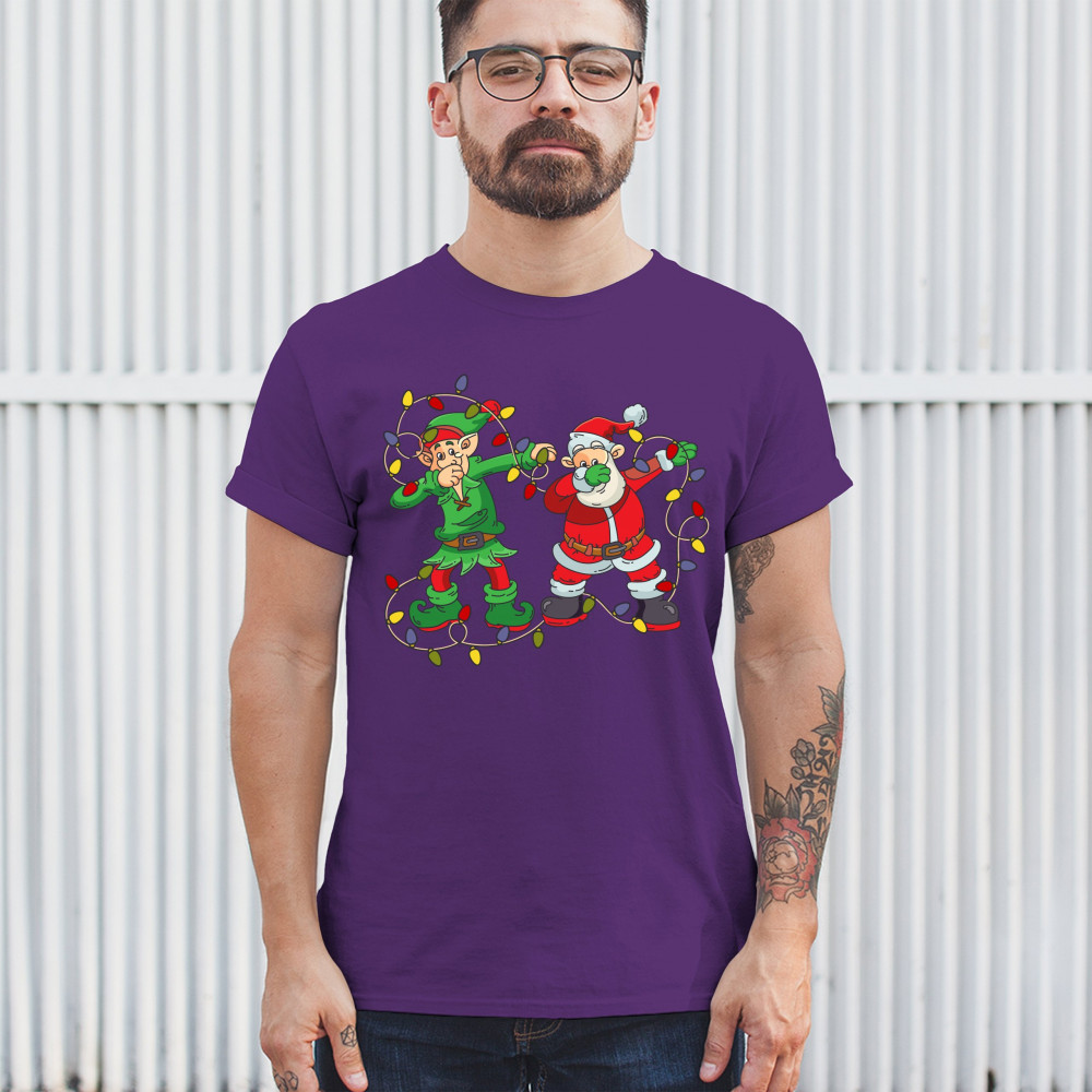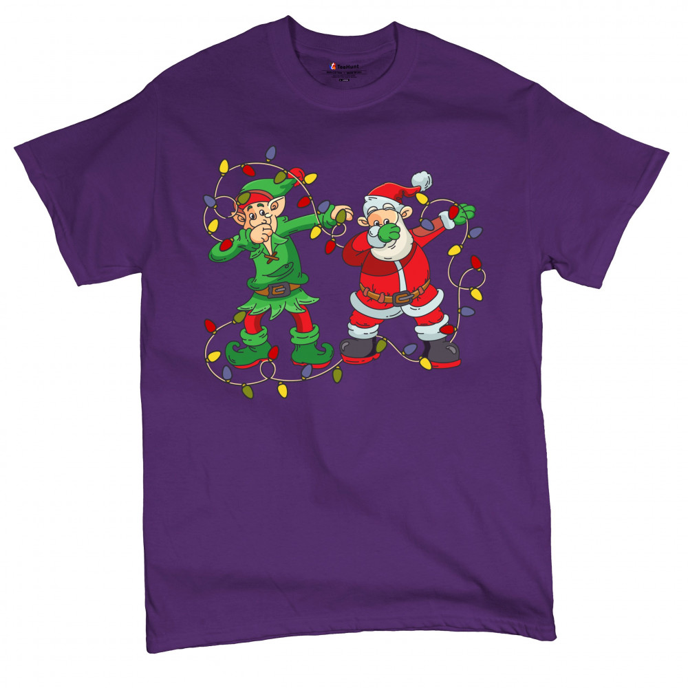 ELF AND SANTA CLAUS DAB DANCING t-shirt merry and bright christmas men's tee purple
