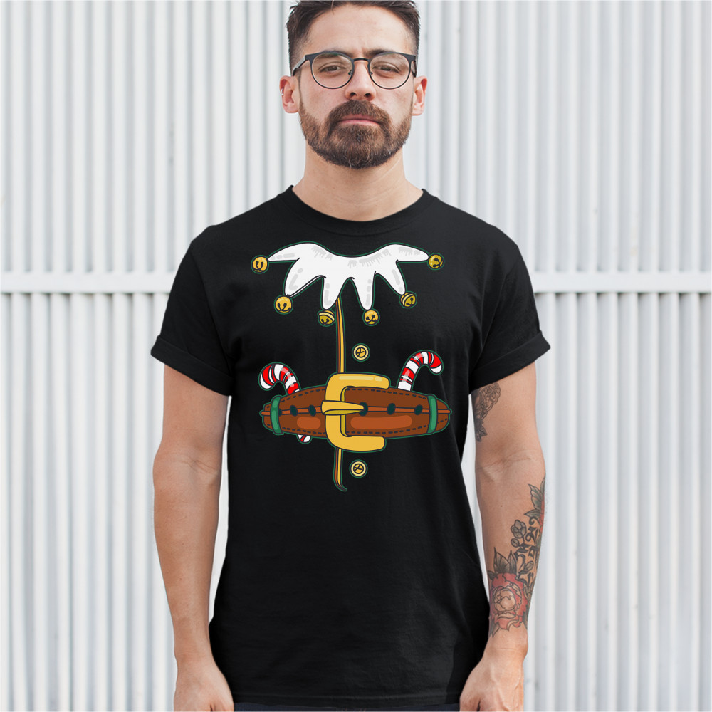 A print designed as an elven costume with two candy canes in his belt. Amazing choice to have fun and spread positive vibes on Christmas Eve.