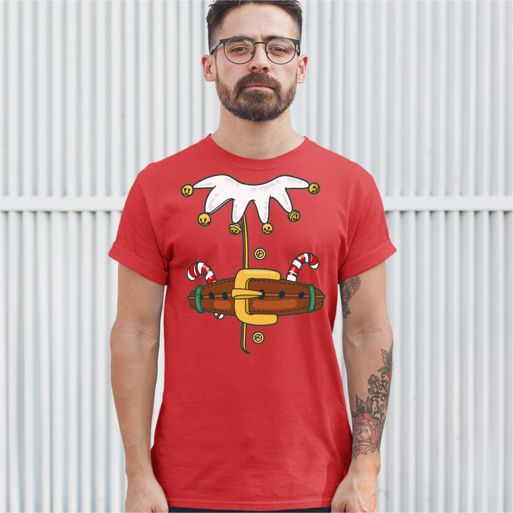 A print designed as an elven costume with two candy canes in his belt. Amazing choice to have fun and spread positive vibes on Christmas Eve.