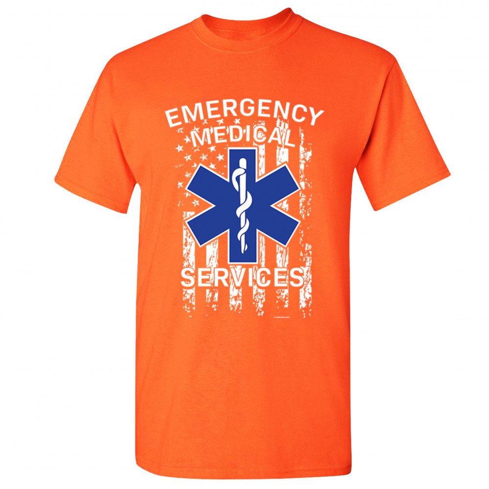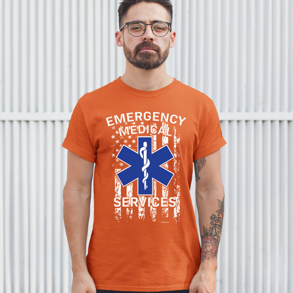 EMERGENCY MEDICAL SERVICES t-shirt american flag star of life ems men's tee orange