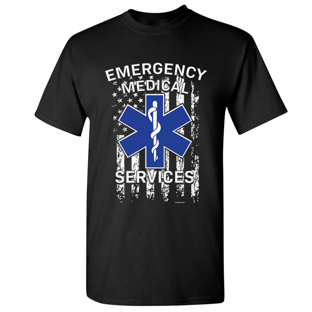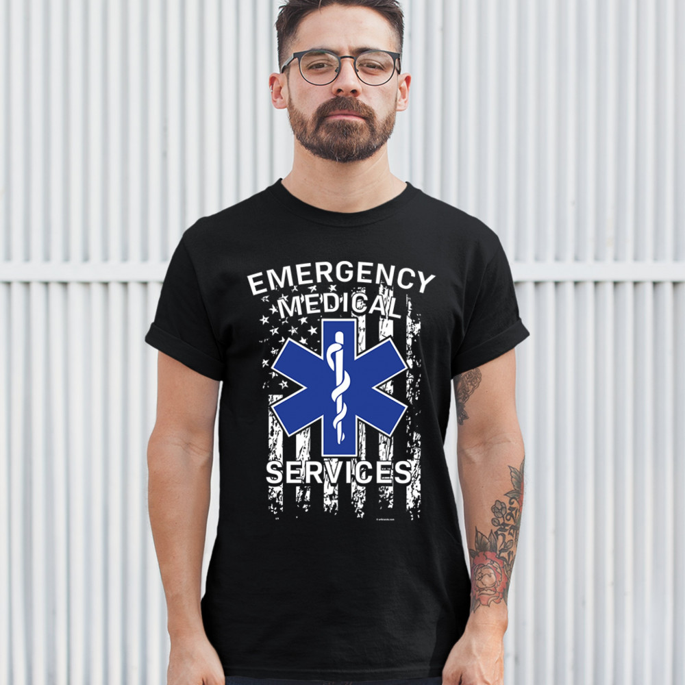 EMERGENCY MEDICAL SERVICES t-shirt american flag star of life ems men's tee black