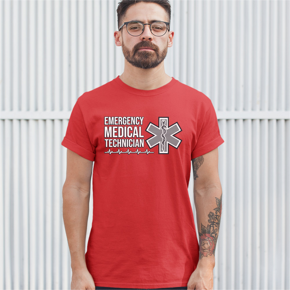 A print saying "Emergency Medical Technician". To the right there is a Star of Life, the worldwide recognized symbol of emergency medical services, with the Rod of Asclepius inside of it. A great choice as a gift for a first responder.