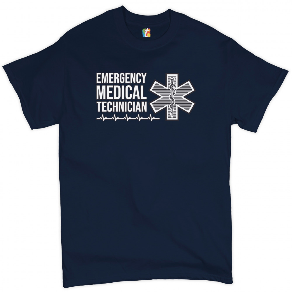 EMERGENCY MEDICAL TECHNICIAN t-shirt emt ems first responder men's tee navy blue
