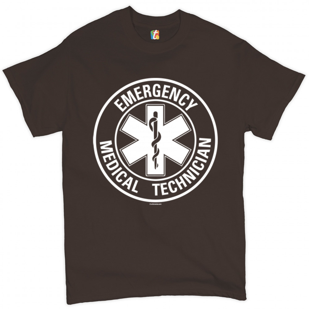 EMERGENCY MEDICAL TECHNICIAN t-shirt star of life first responder men's tee brown