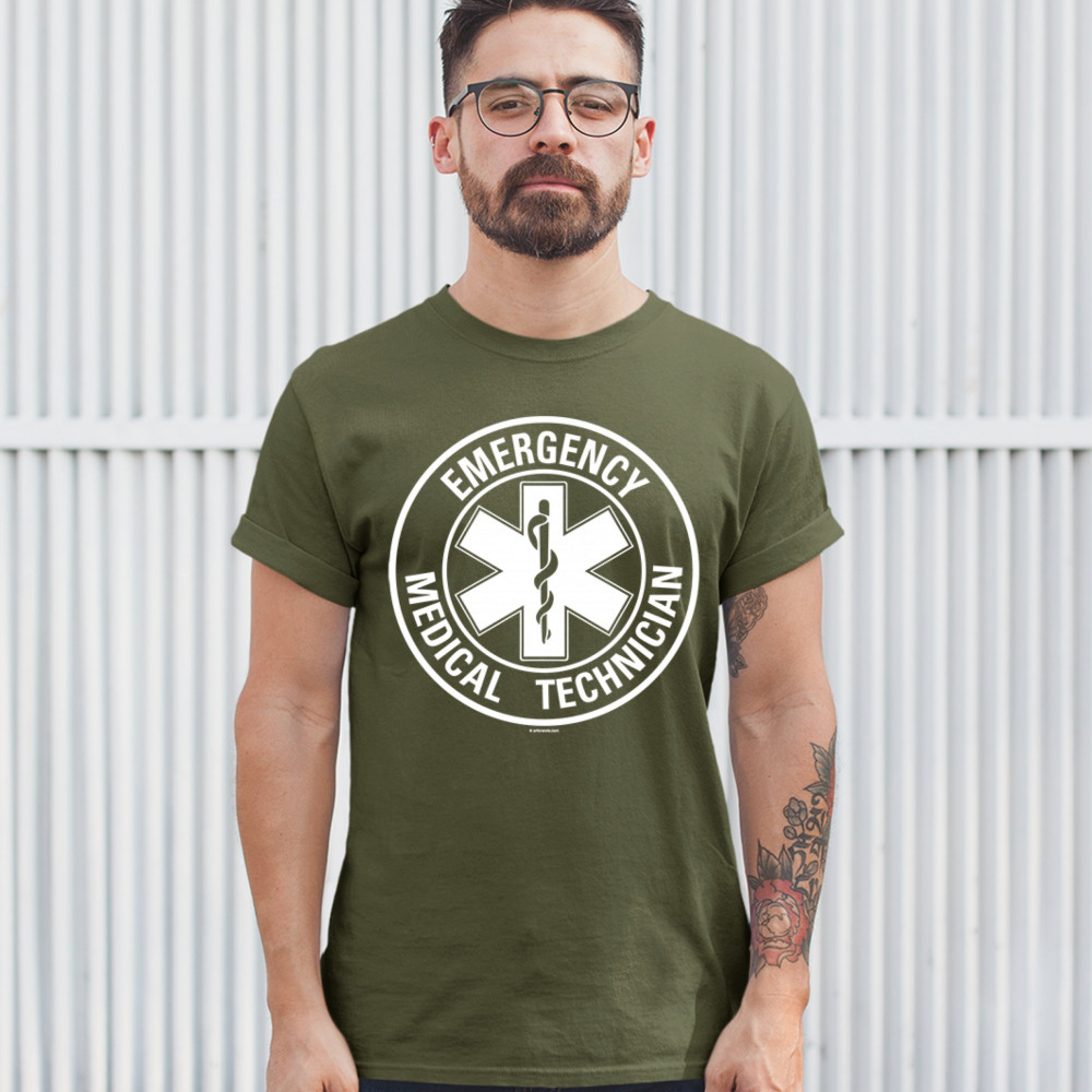 EMERGENCY MEDICAL TECHNICIAN t-shirt star of life first responder men's tee military green