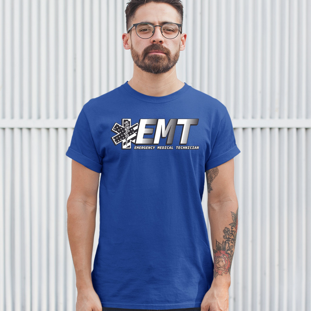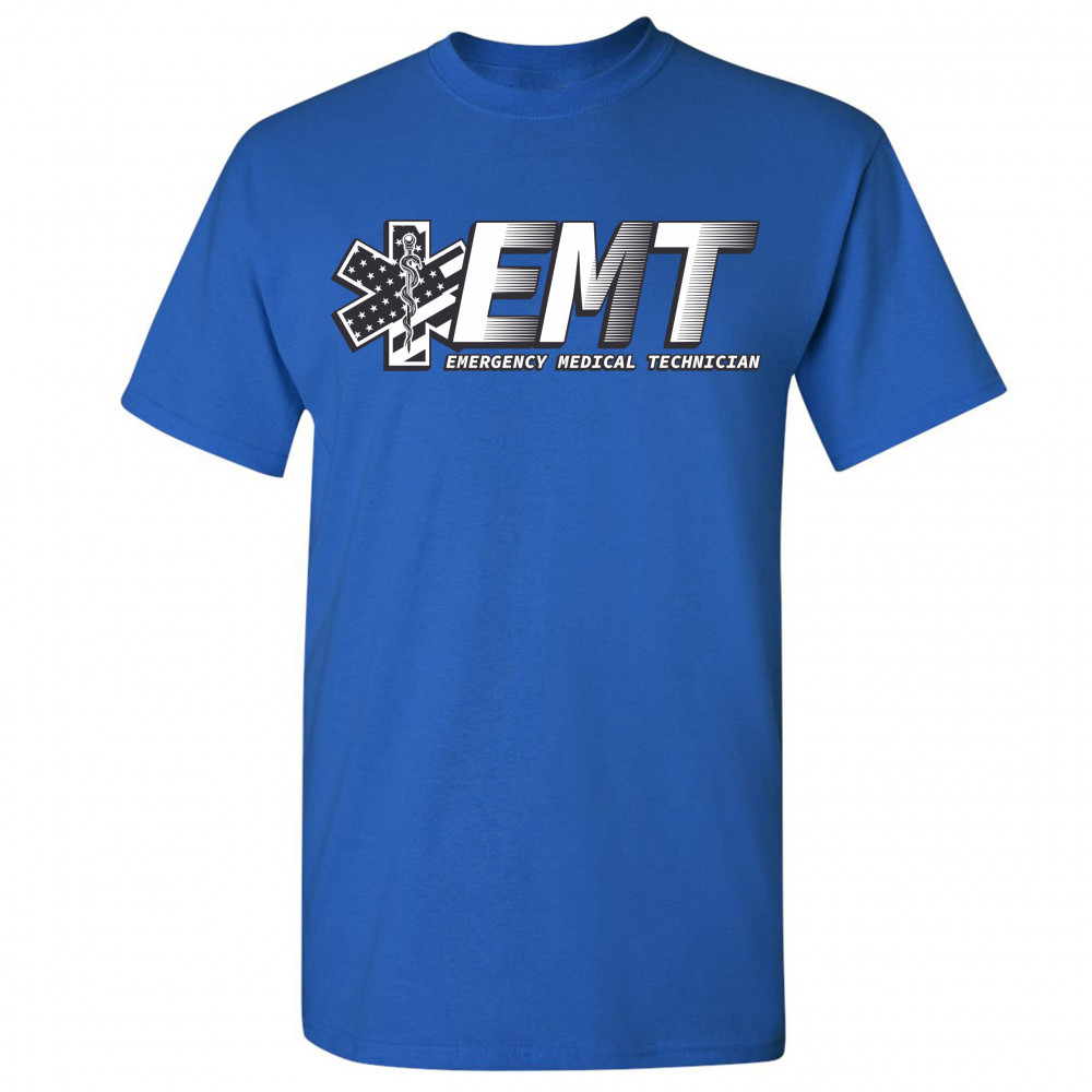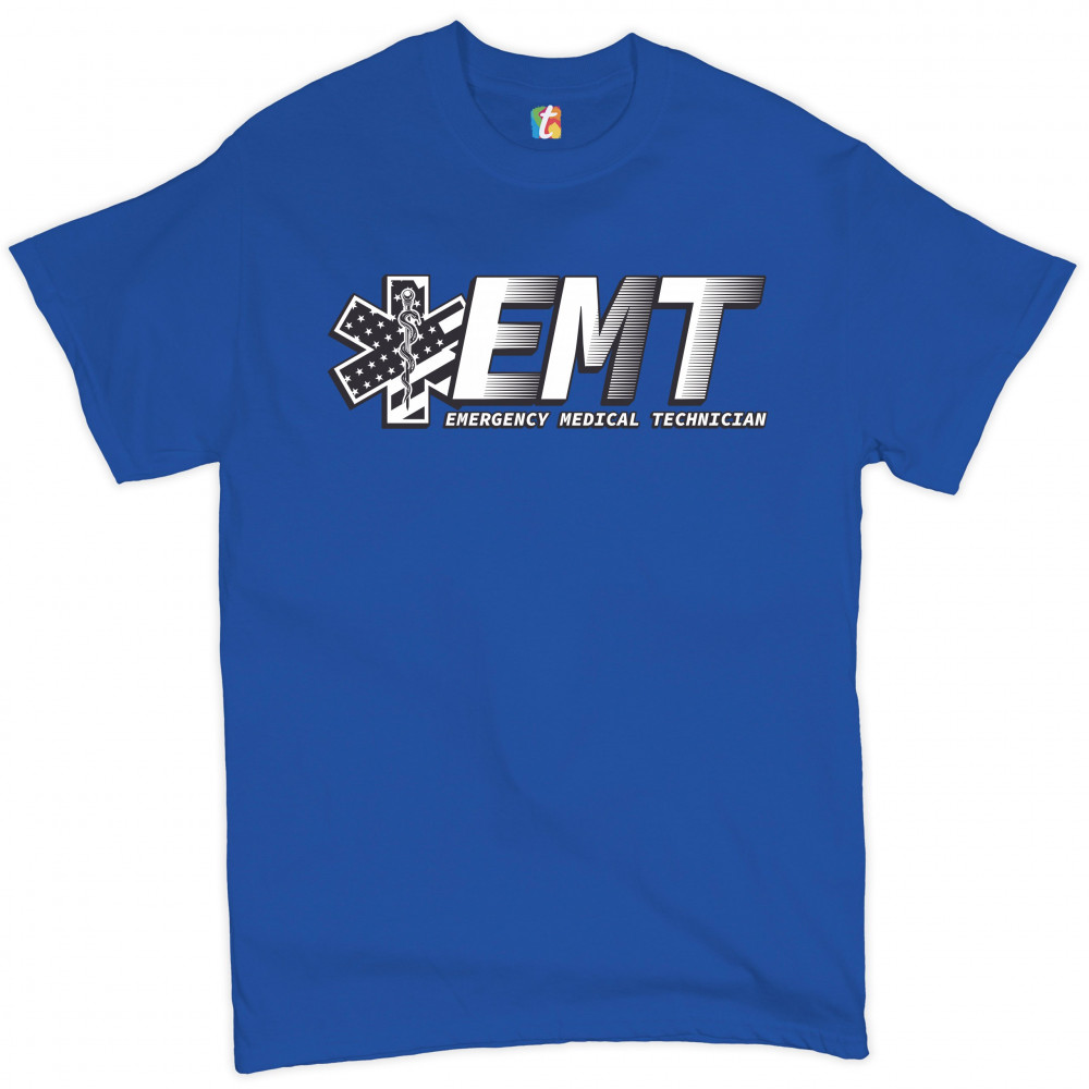 EMT EMERGENCY MEDICAL TECHNICIAN t-shirt ems paramedic star of life men's tee royal blue