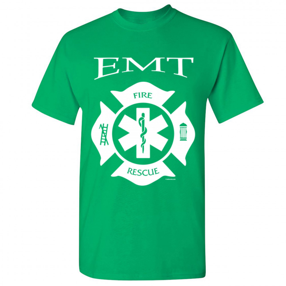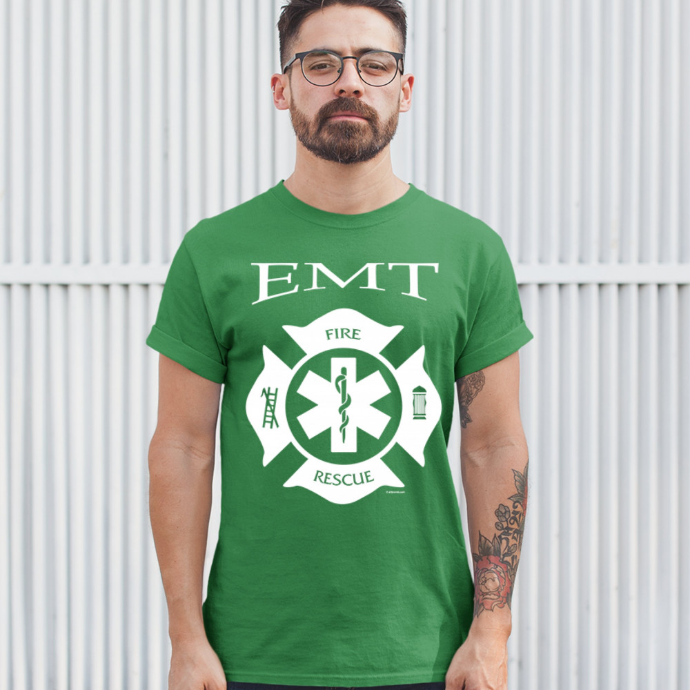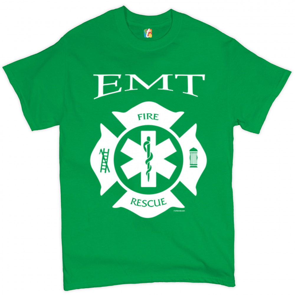 EMT FIRE AND RESCUE t-shirt emergency first responder ems medic men's tee green