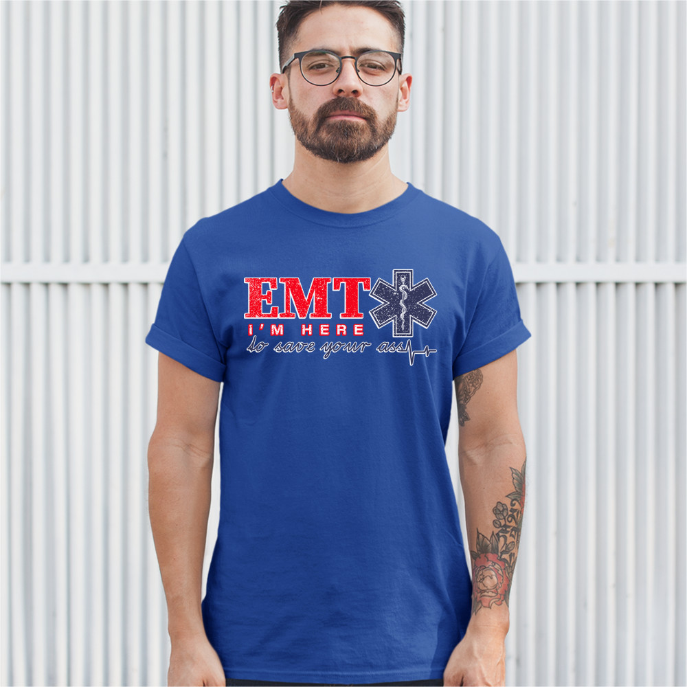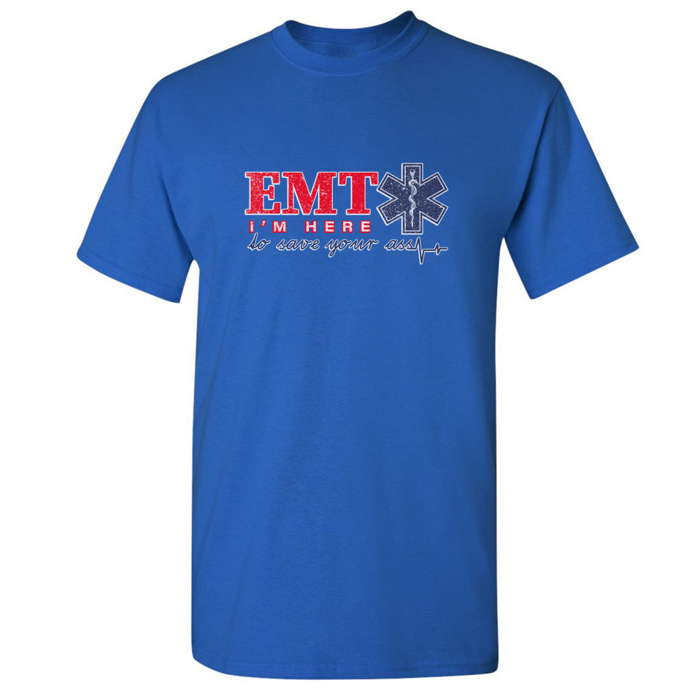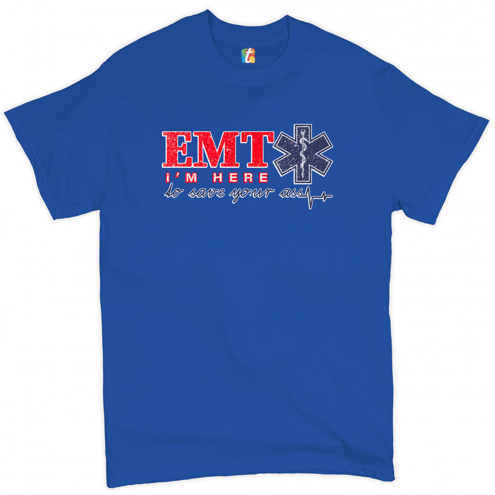 EMT I'M HERE TO SAVE YOUR ASS t-shirt funny ems medical assistant men's tee royal blue