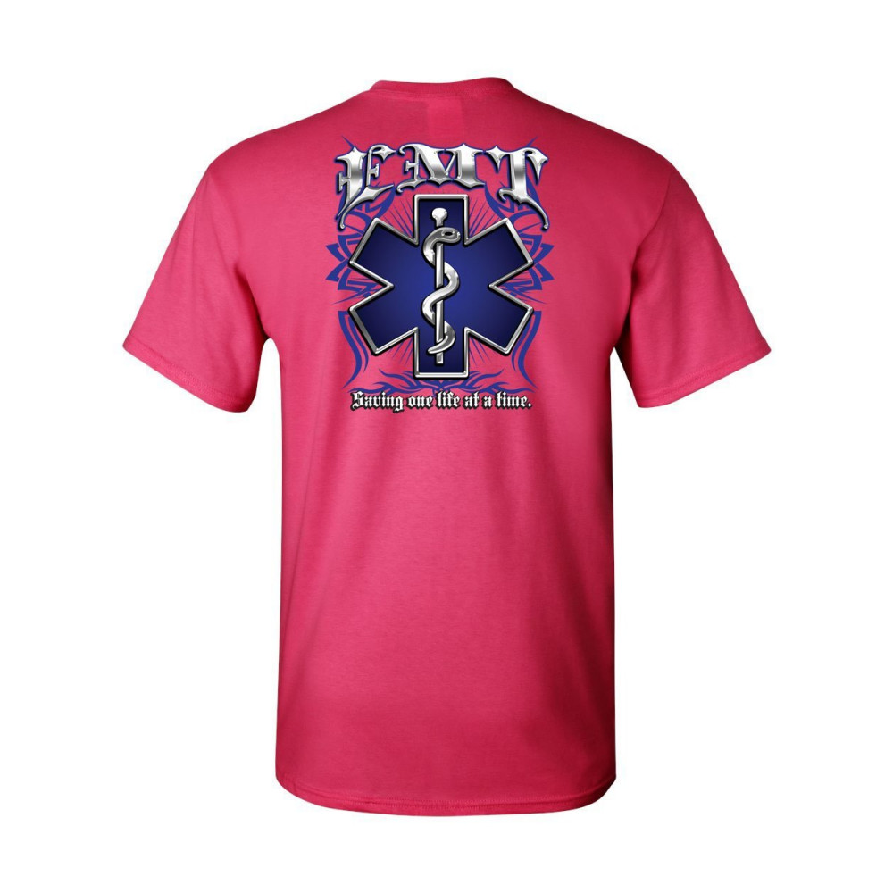 EMT SAVING ONE LIFE AT A TIME t-shirt paramedic first responders mens tee shirt hot pink