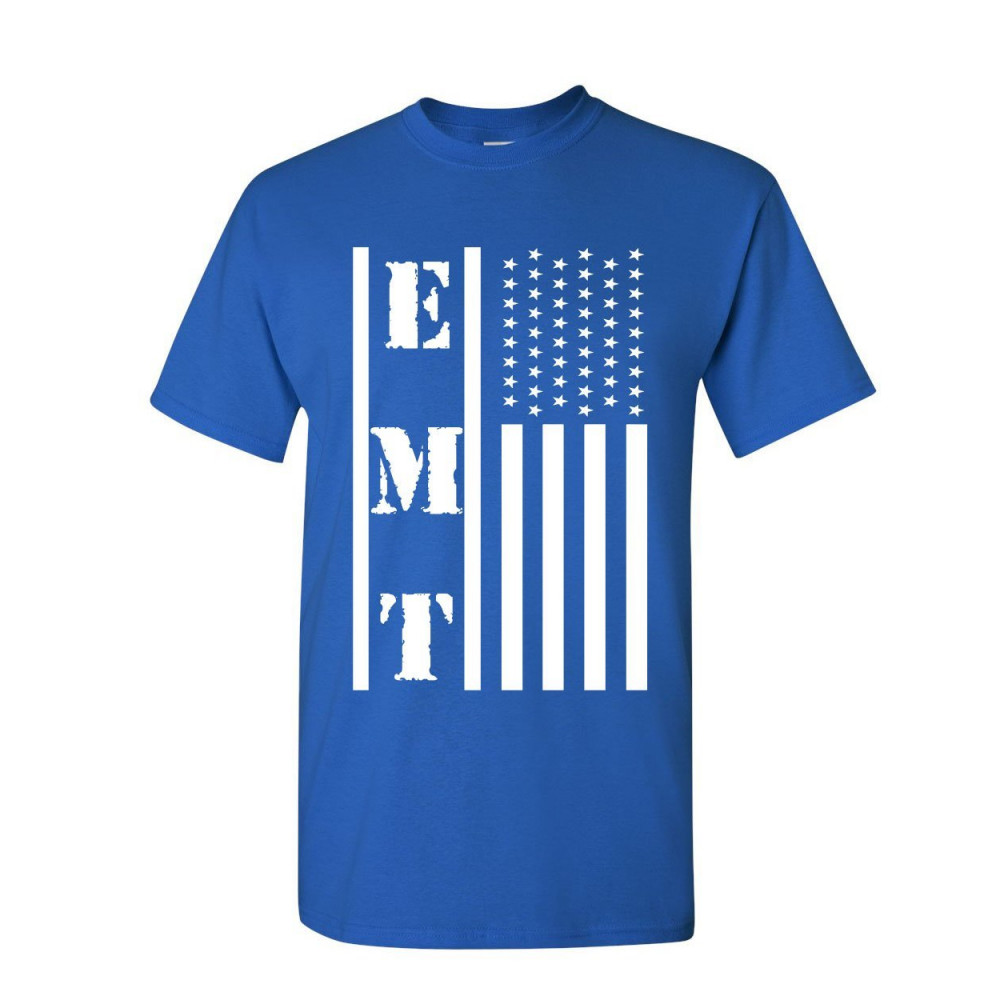 EMT STARS AND STRIPES t-shirt first responders paramedic ems mens tee shirt royal blue