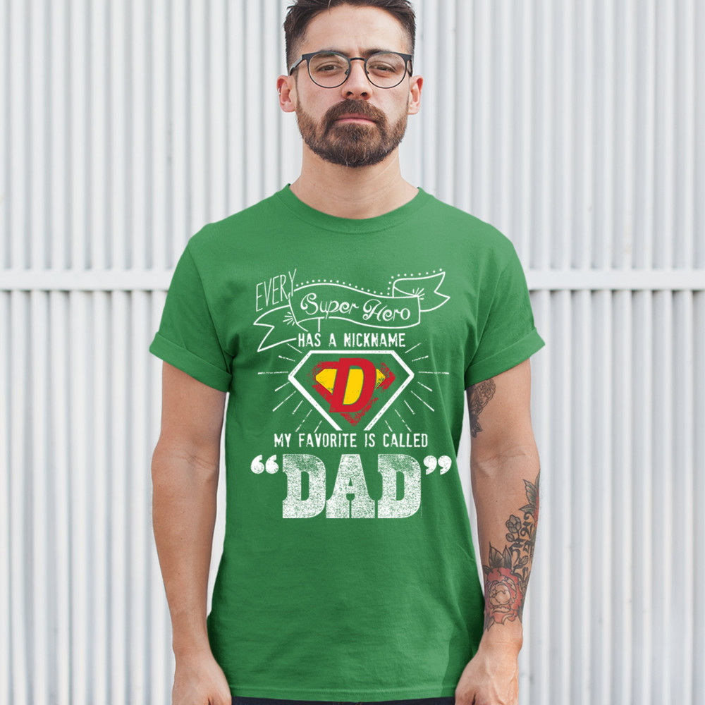 EVERY SUPER HERO HAS A NICKNAME t-shirt best dad ever father's day men's tee green