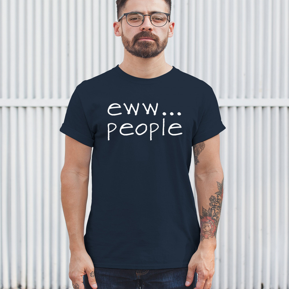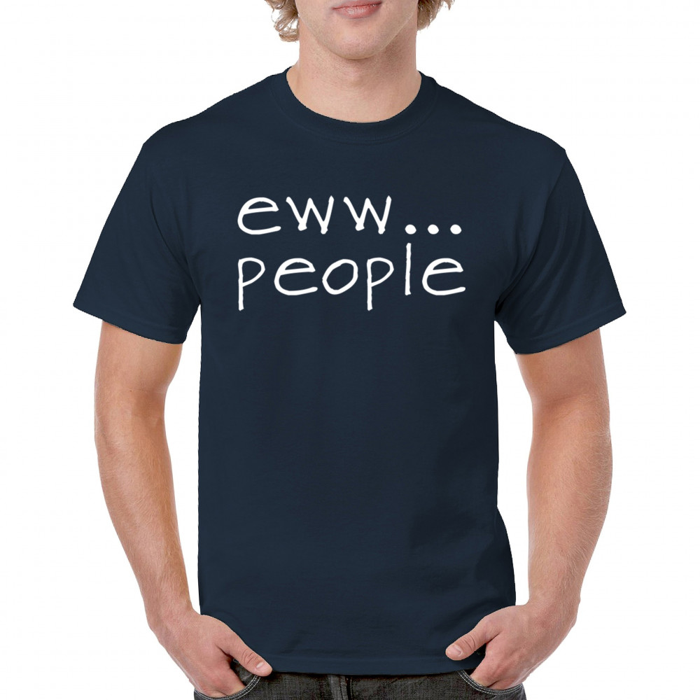 Embrace your personal space with a design that says 'less people, more peace' in a humorous, minimalist style.