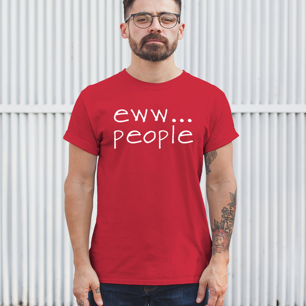 Embrace your personal space with a design that says 'less people, more peace' in a humorous, minimalist style.