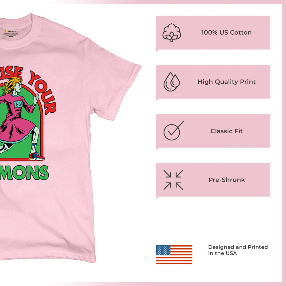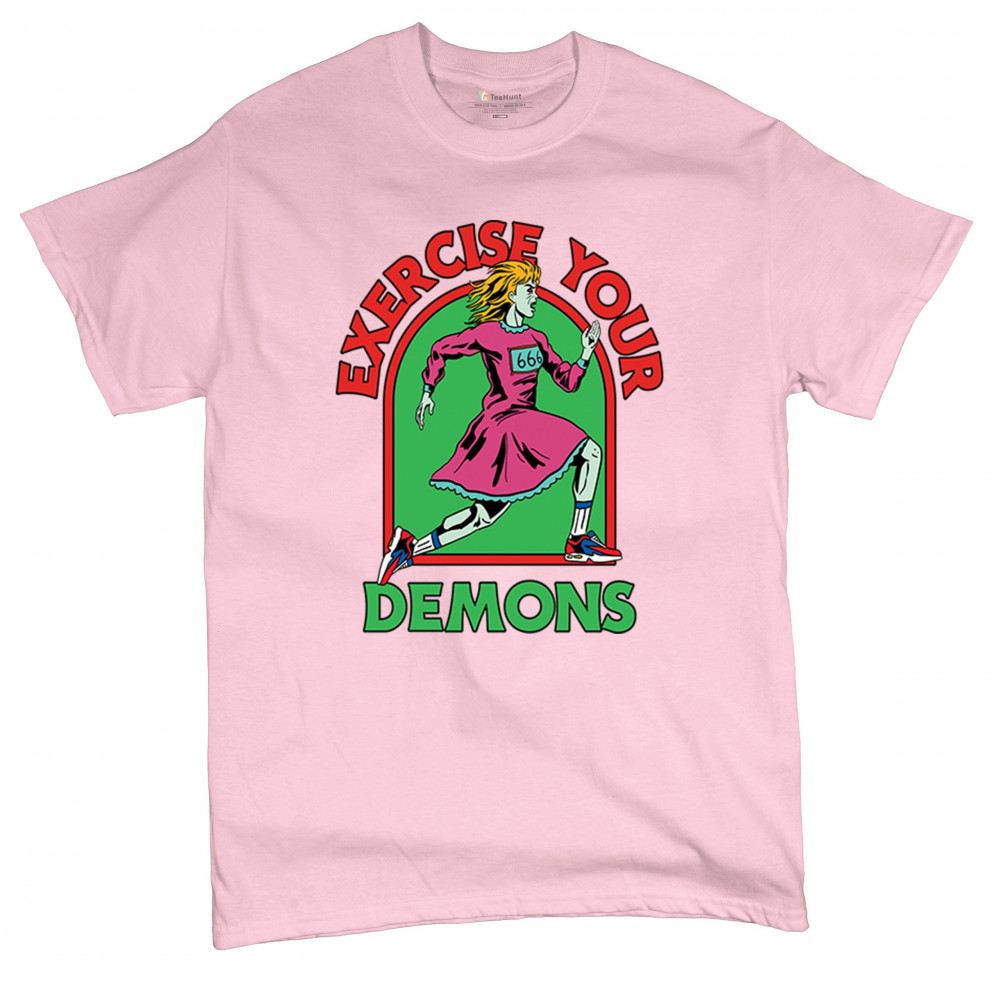 Exercise Your Demons shirt – funny halloween gym shirt with fitness humor, scary workout design, demon runner style, and spooky parody vibes.