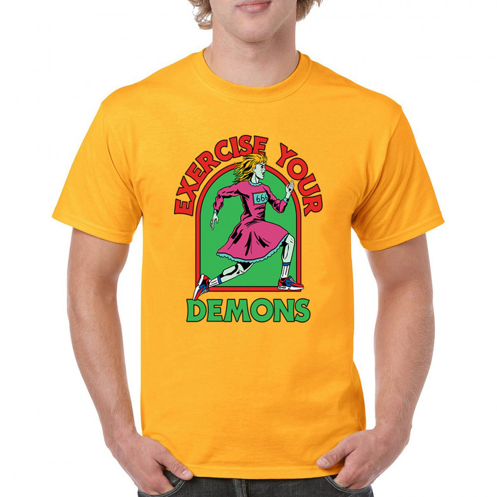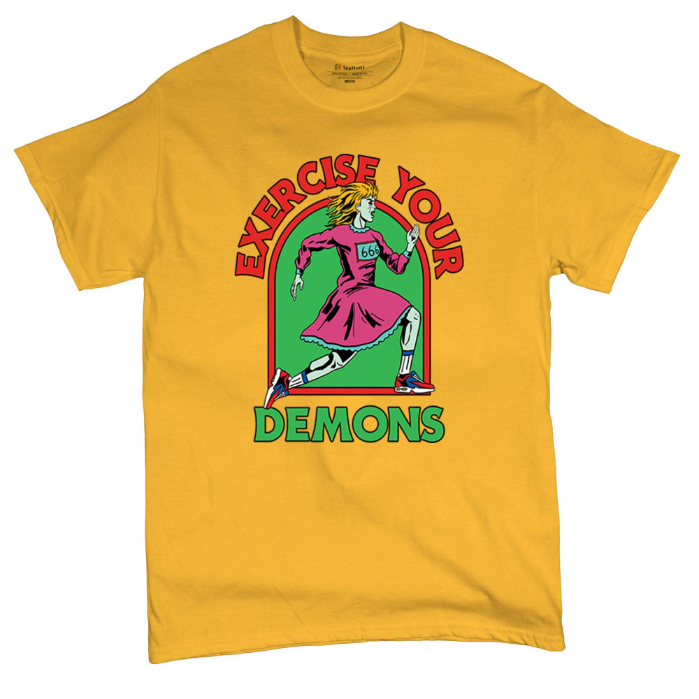Exercise Your Demons shirt – funny halloween gym shirt with fitness humor, scary workout design, demon runner style, and spooky parody vibes.