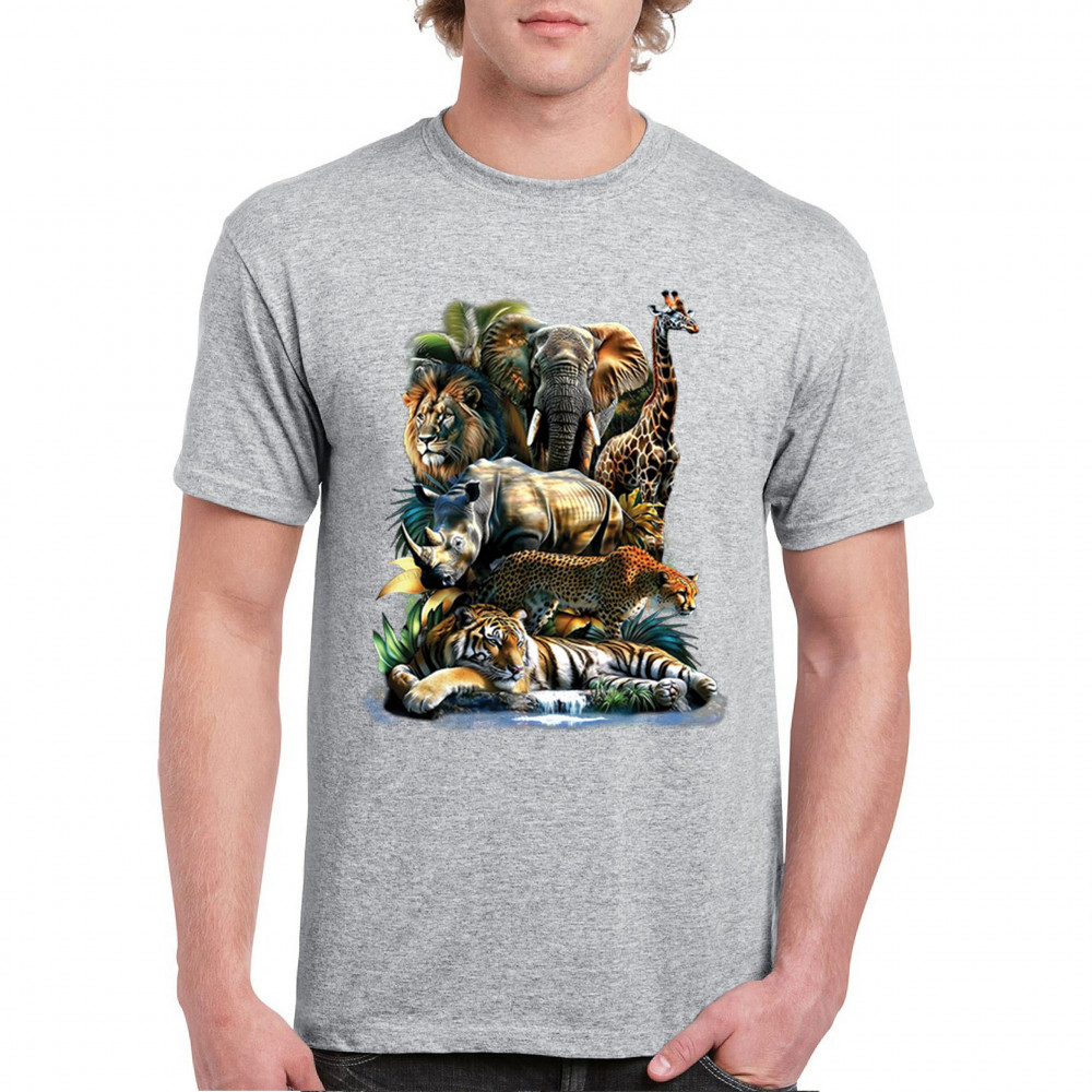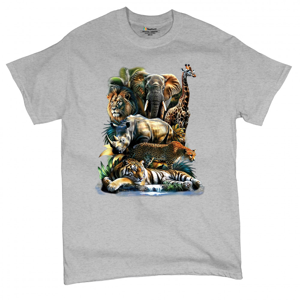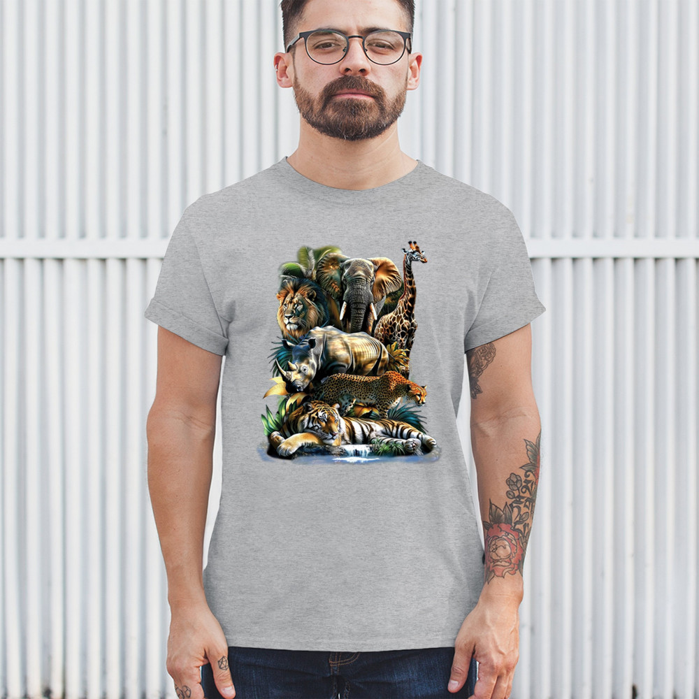 Wildlife design with lion, tiger, giraffe, rhino, cheetah, and elephant. Perfect for animal lovers and safari fans who embrace nature’s fierce spirit.