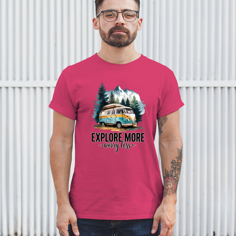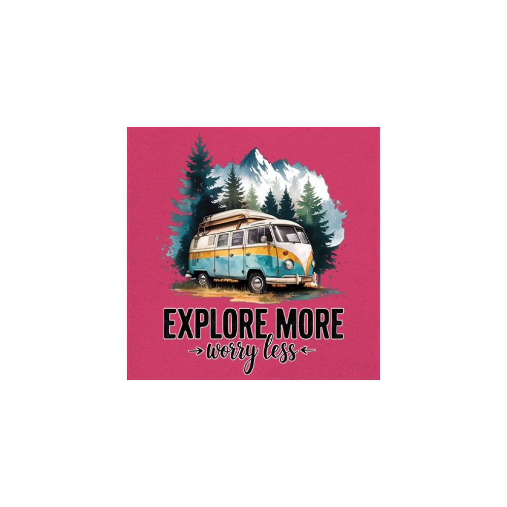 Explore More Worry Less is made for the outdoor soul—celebrating trail lovers, weekend hikers, and national park explorers. Whether you're into off-grid adventures or glamping with family, this design fits your lifestyle. Embrace nature, campfire moments, and wilderness vibes with a look built for your next escape.
