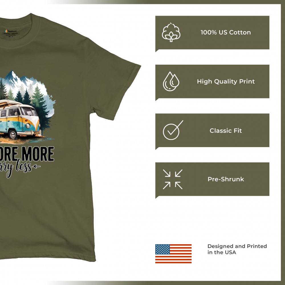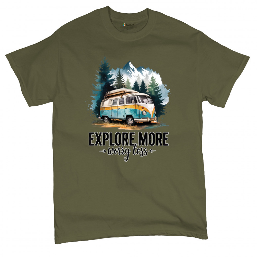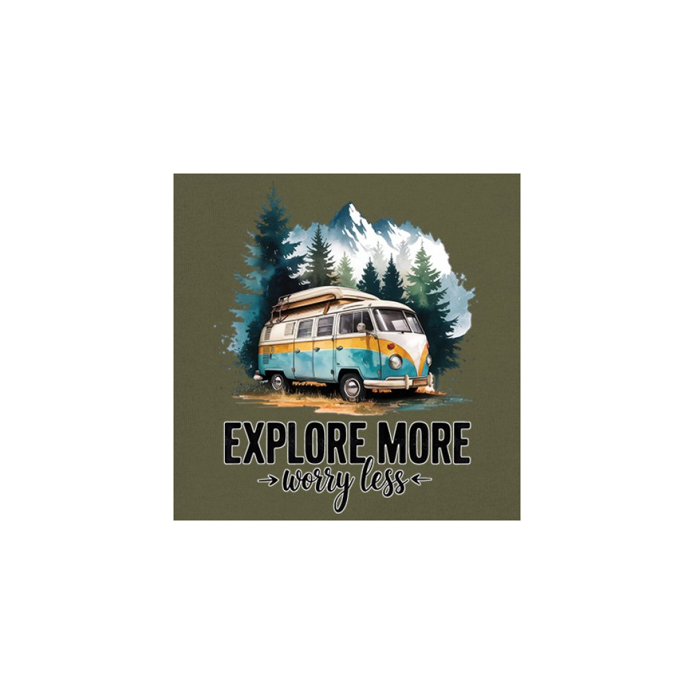 Explore More Worry Less is made for the outdoor soul—celebrating trail lovers, weekend hikers, and national park explorers. Whether you're into off-grid adventures or glamping with family, this design fits your lifestyle. Embrace nature, campfire moments, and wilderness vibes with a look built for your next escape.