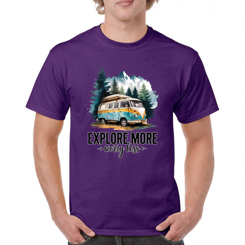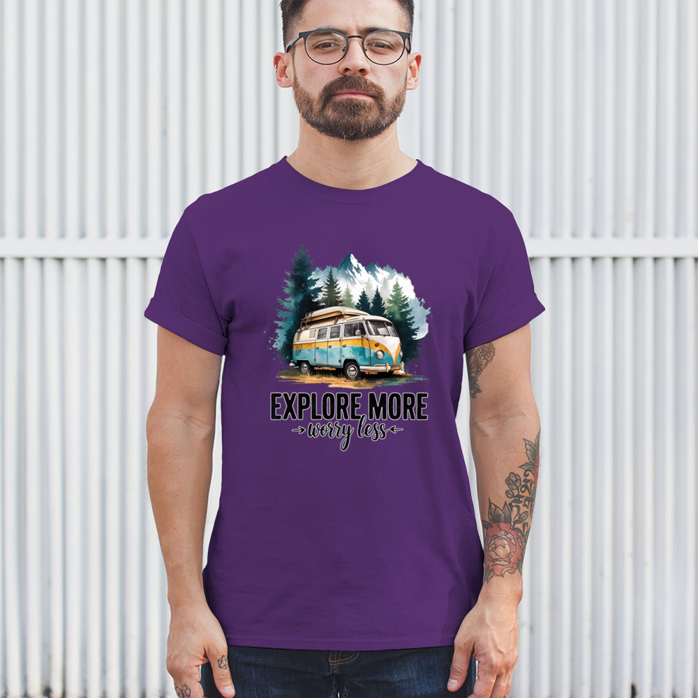 Explore More Worry Less is made for the outdoor soul—celebrating trail lovers, weekend hikers, and national park explorers. Whether you're into off-grid adventures or glamping with family, this design fits your lifestyle. Embrace nature, campfire moments, and wilderness vibes with a look built for your next escape.