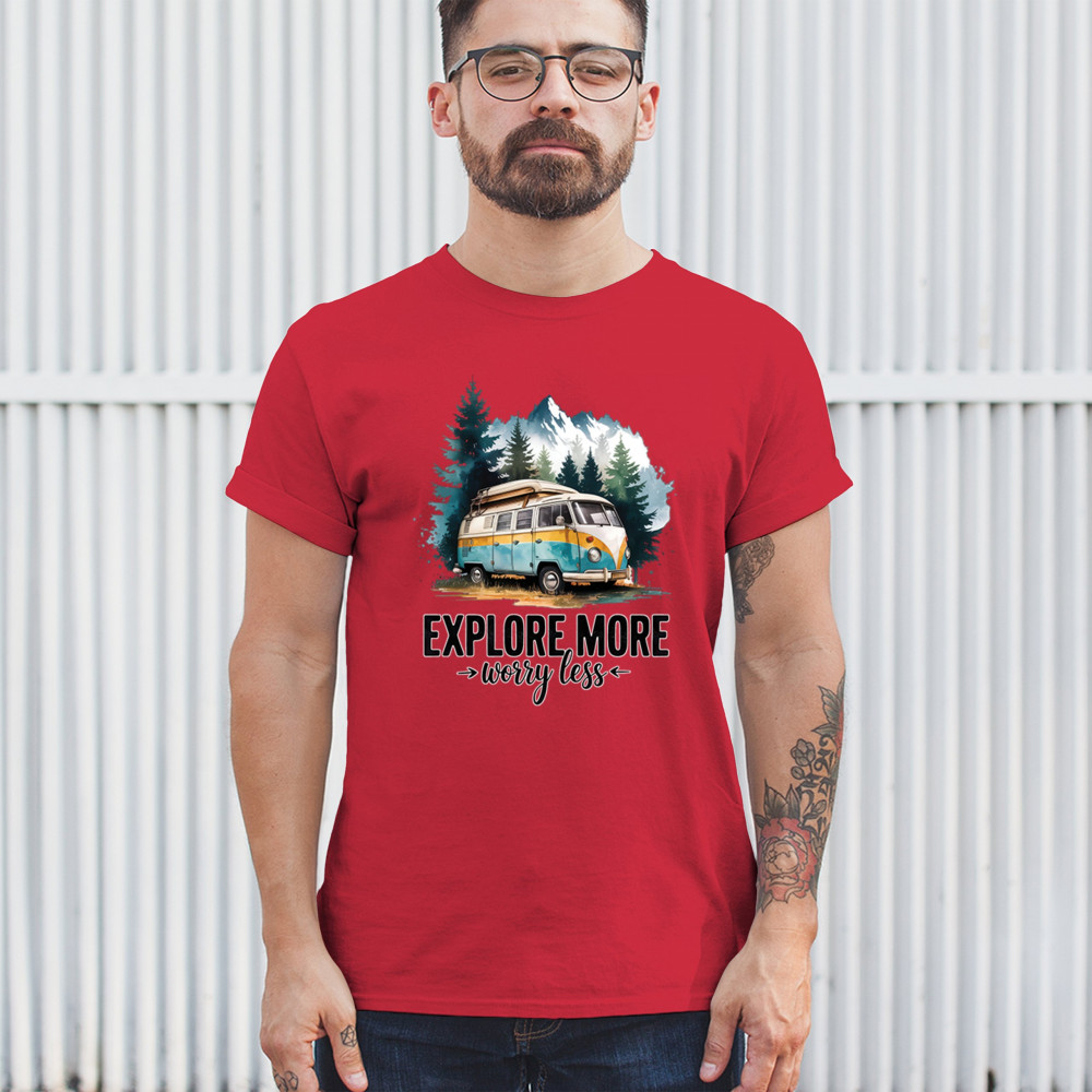 Explore More Worry Less is made for the outdoor soul—celebrating trail lovers, weekend hikers, and national park explorers. Whether you're into off-grid adventures or glamping with family, this design fits your lifestyle. Embrace nature, campfire moments, and wilderness vibes with a look built for your next escape.