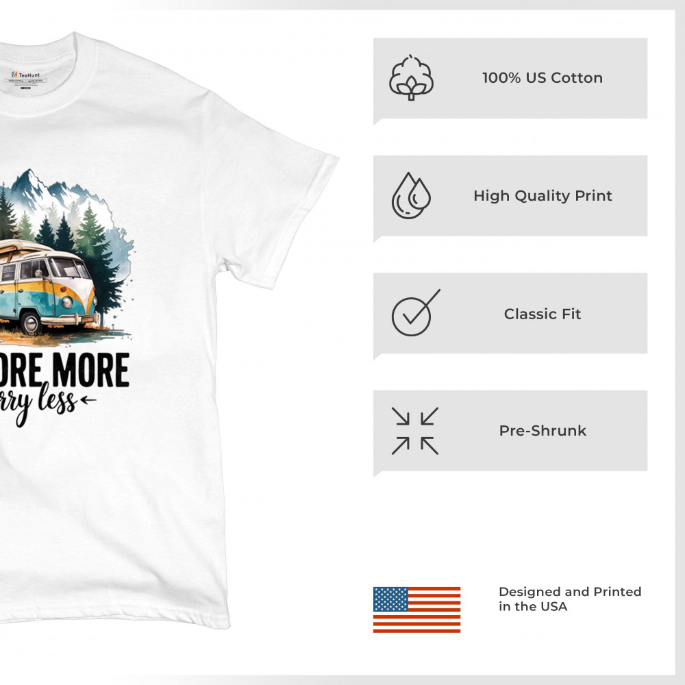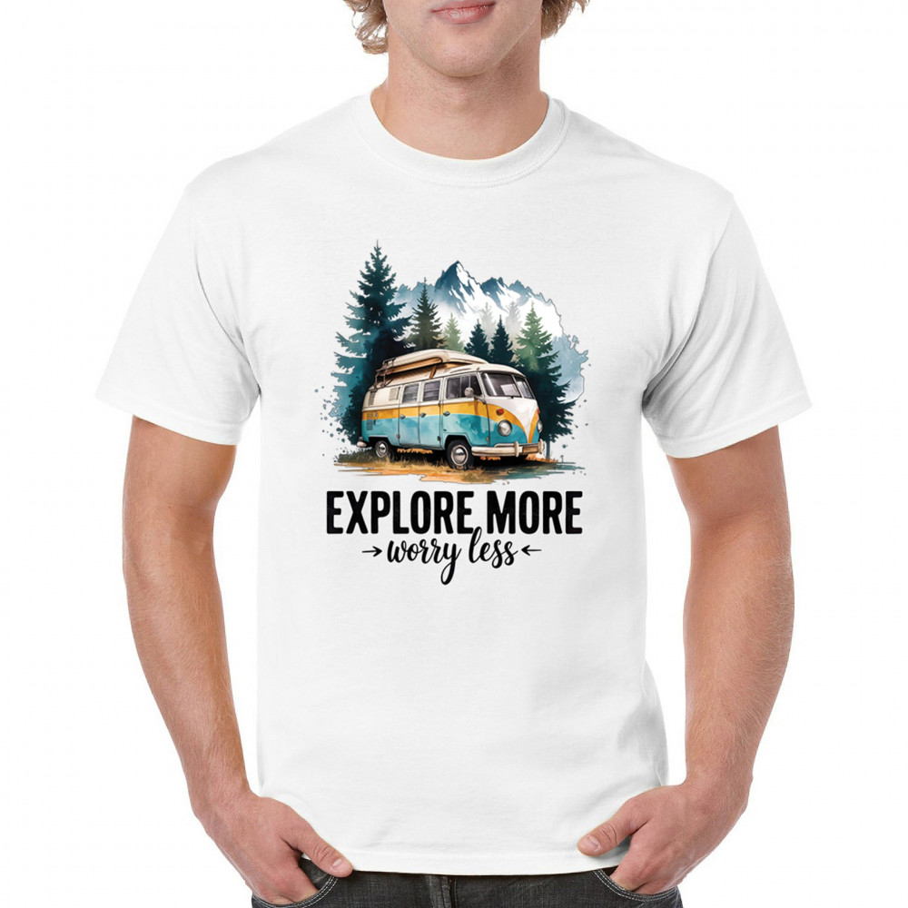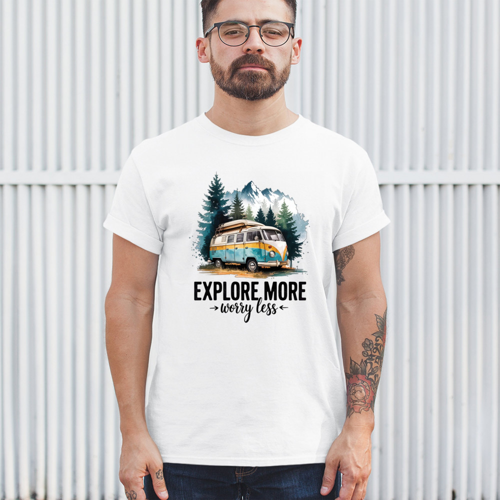 Explore More Worry Less is made for the outdoor soul—celebrating trail lovers, weekend hikers, and national park explorers. Whether you're into off-grid adventures or glamping with family, this design fits your lifestyle. Embrace nature, campfire moments, and wilderness vibes with a look built for your next escape.