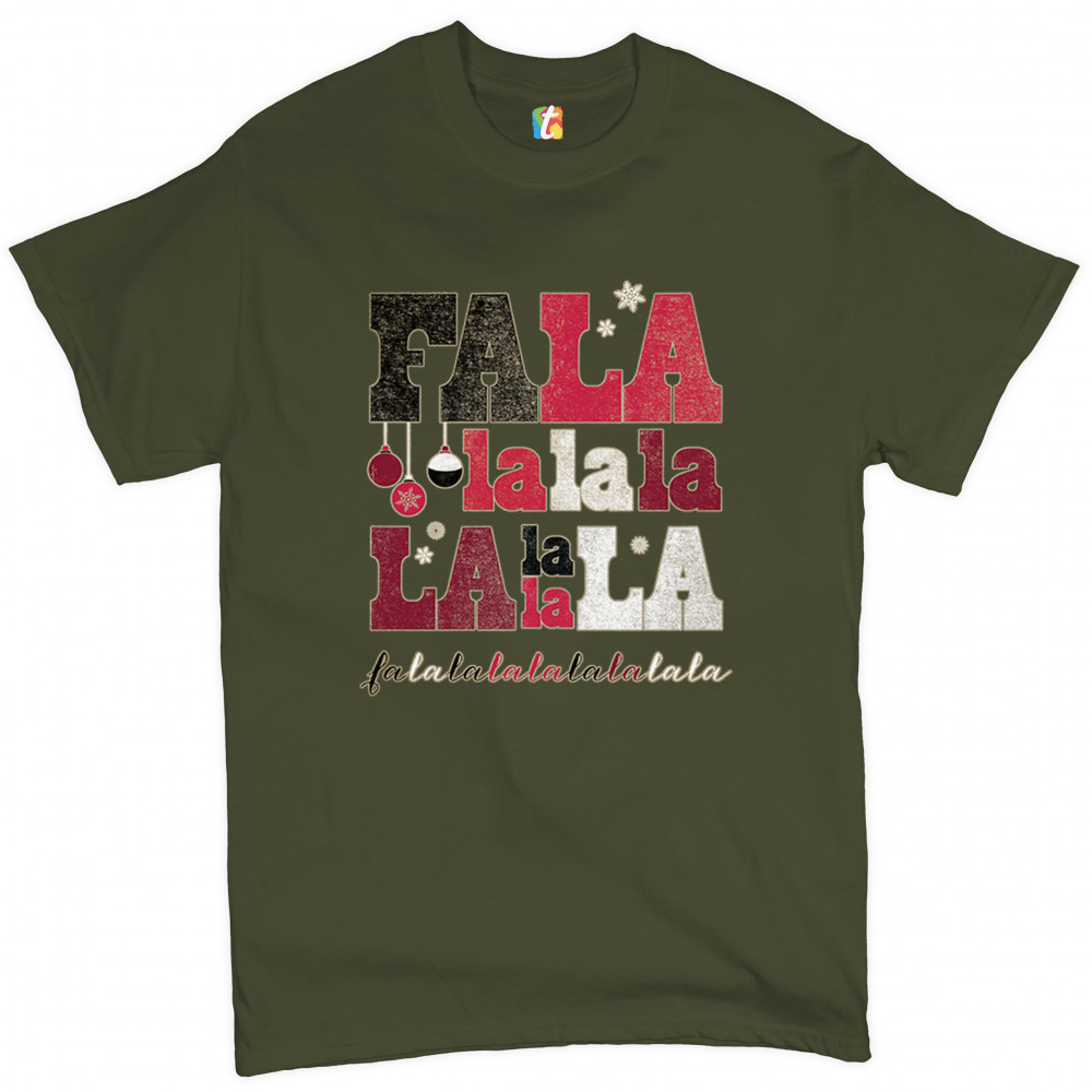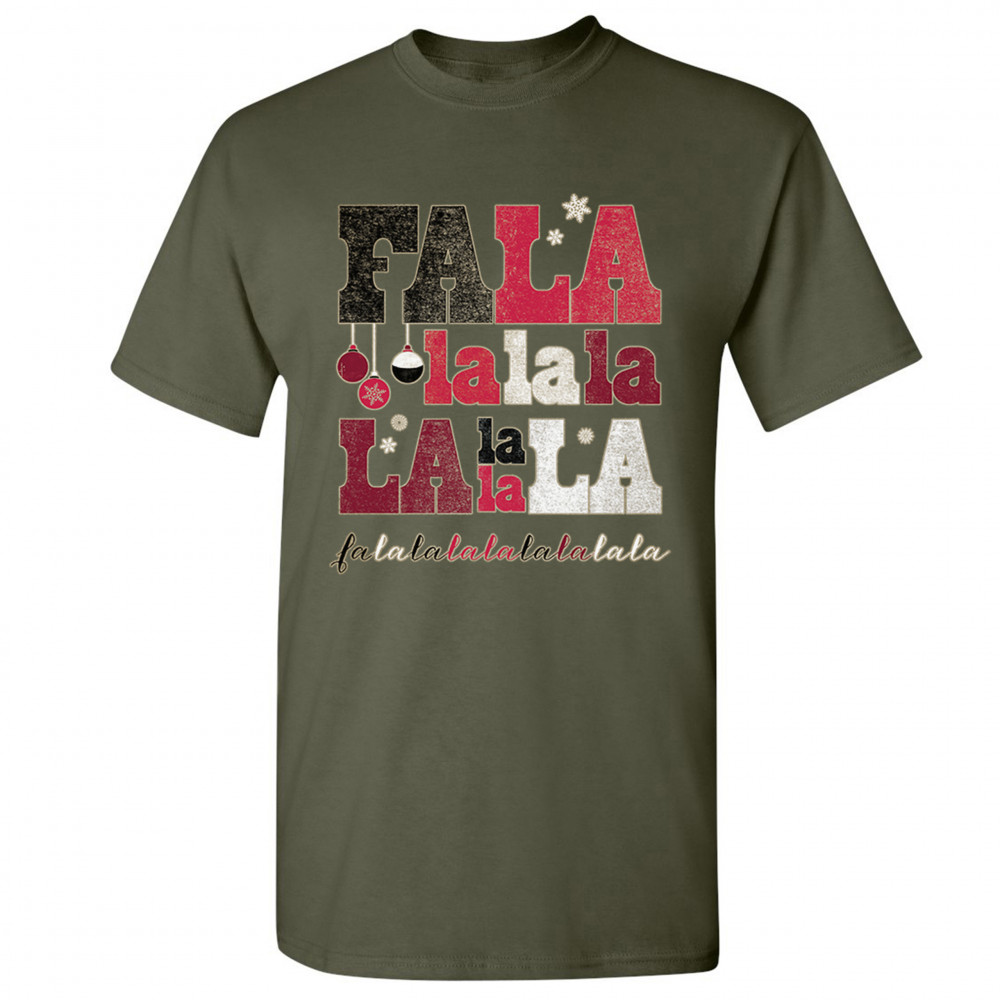 FA LA LA MERRY CHRISTMAS t-shirt deck the halls christmas party men's tee military green