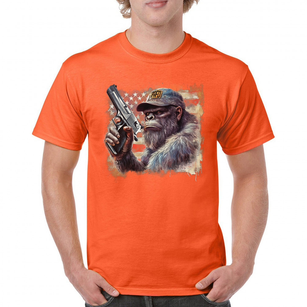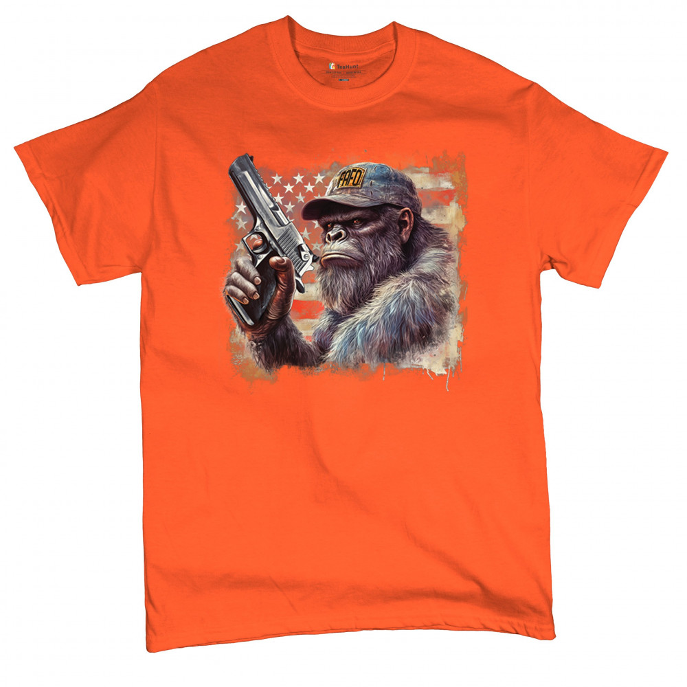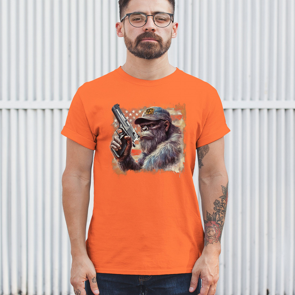 Show your Second Amendment pride with this bold patriotic gorilla design featuring the American flag and a firearm. Perfect for gun rights supporters, veterans, and freedom lovers.