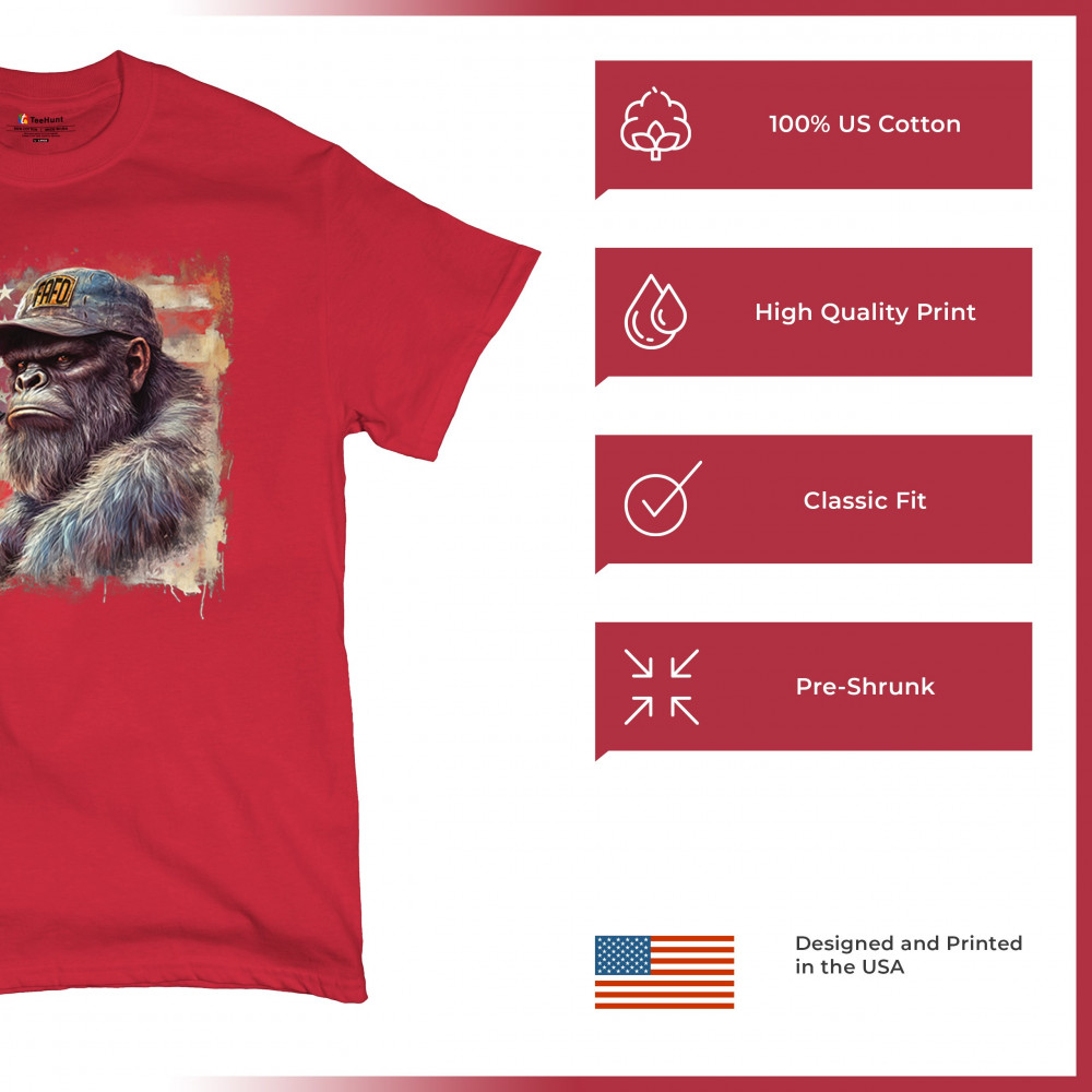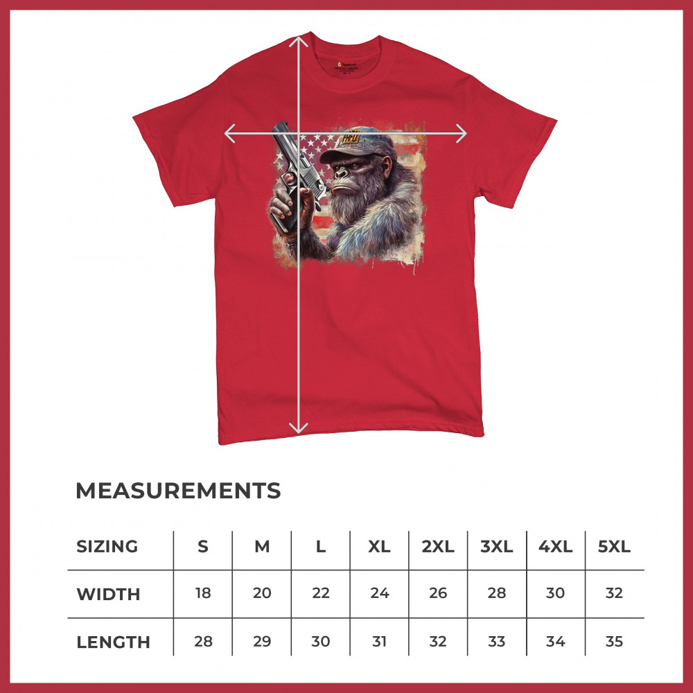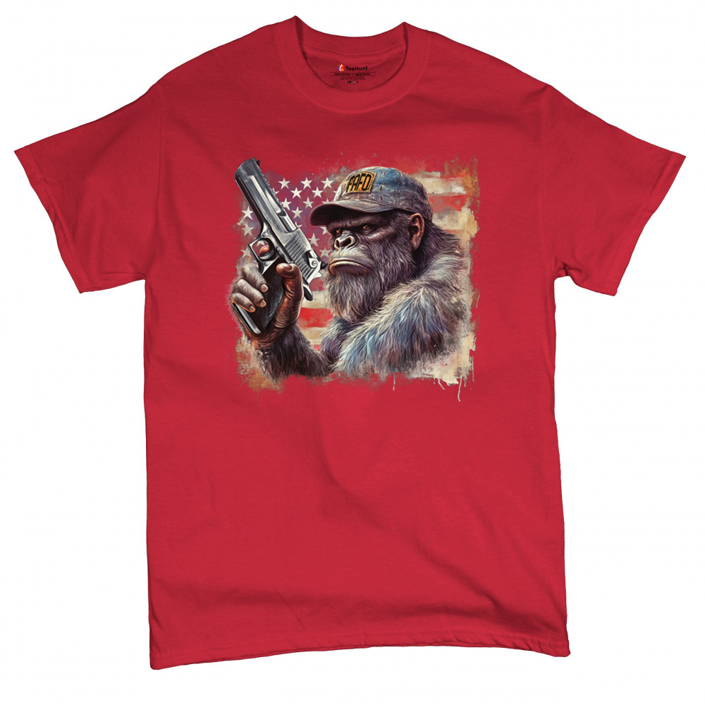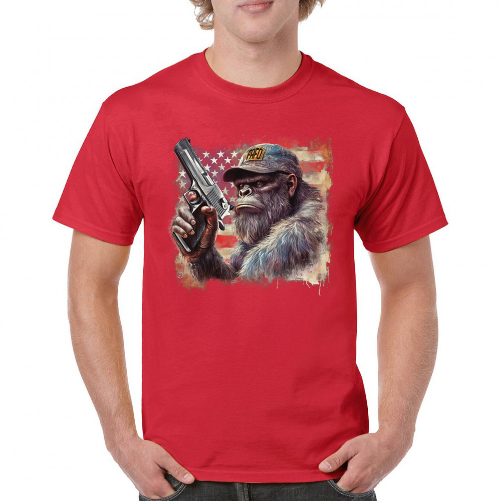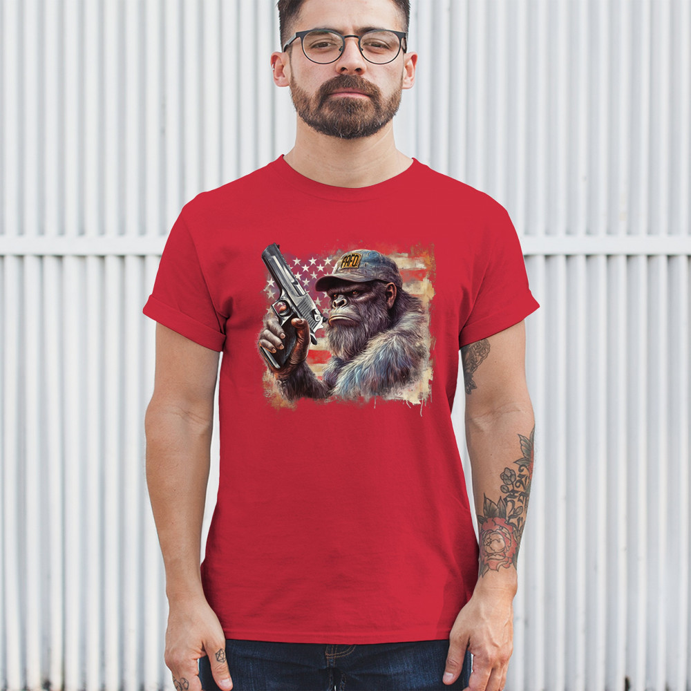 Show your Second Amendment pride with this bold patriotic gorilla design featuring the American flag and a firearm. Perfect for gun rights supporters, veterans, and freedom lovers.