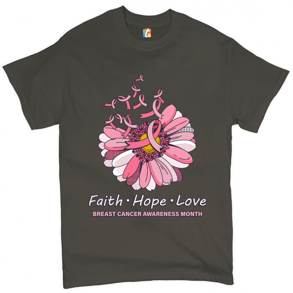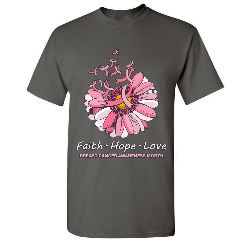 FAITH HOPE LOVE t-shirt breast cancer awareness month ribbon flower men's tee charcoal