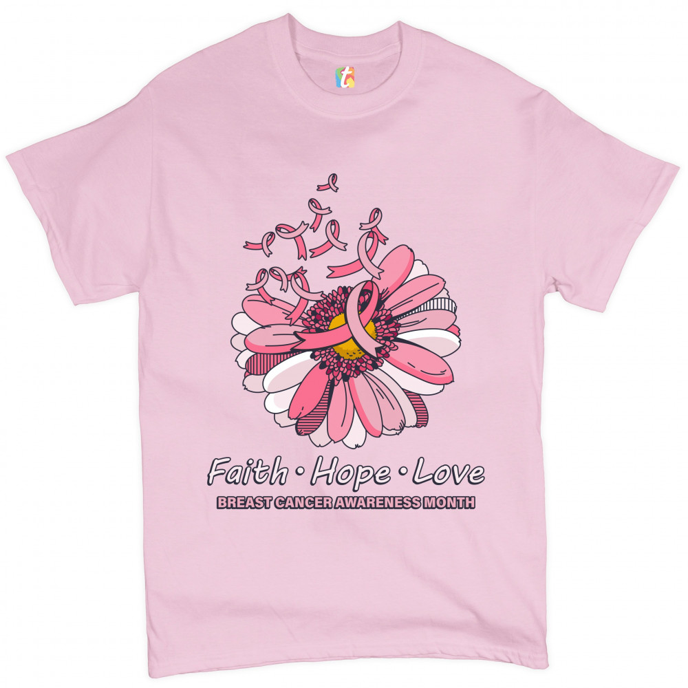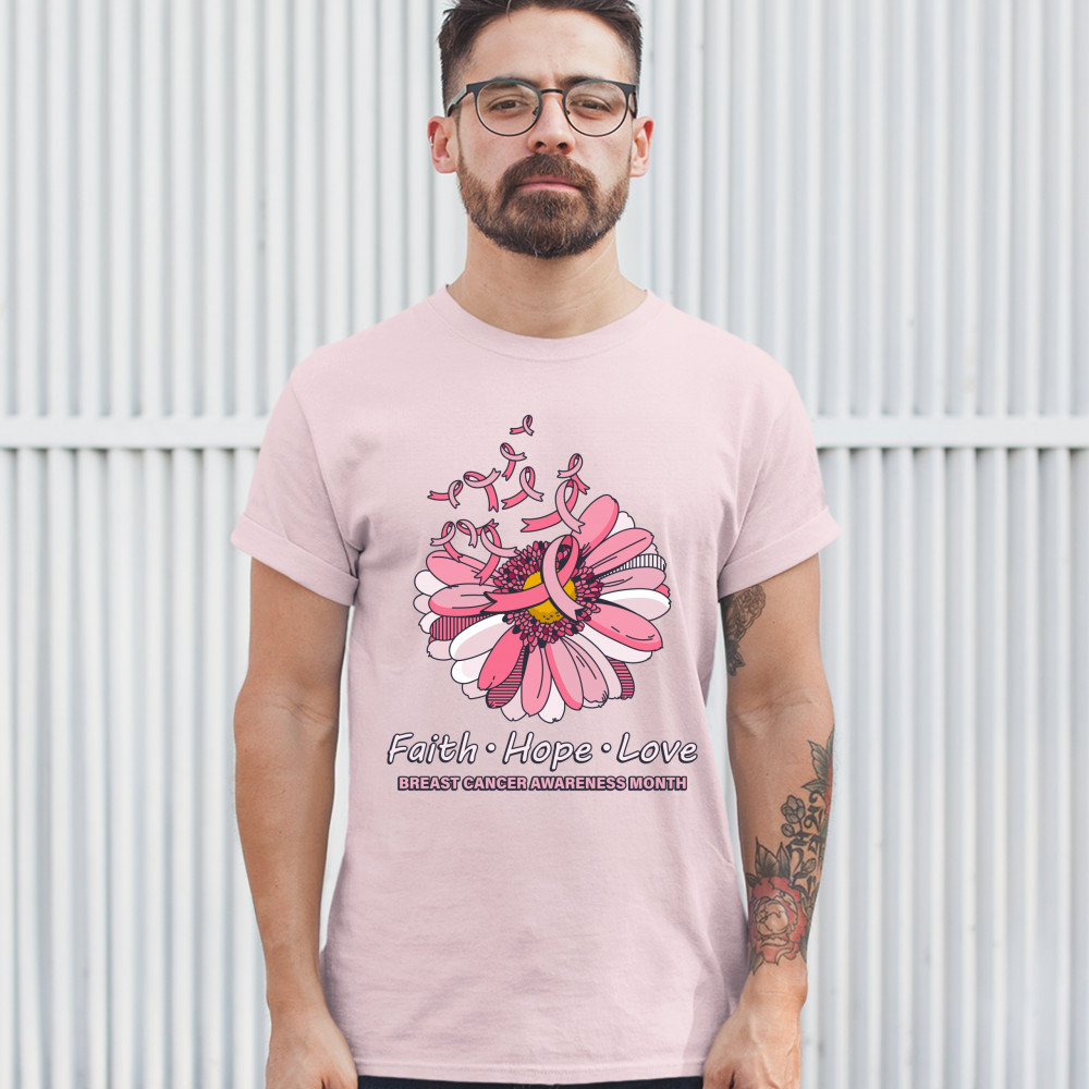 FAITH HOPE LOVE t-shirt breast cancer awareness month ribbon flower men's tee light pink