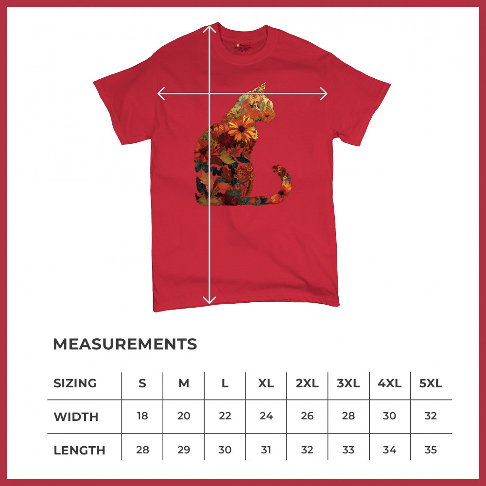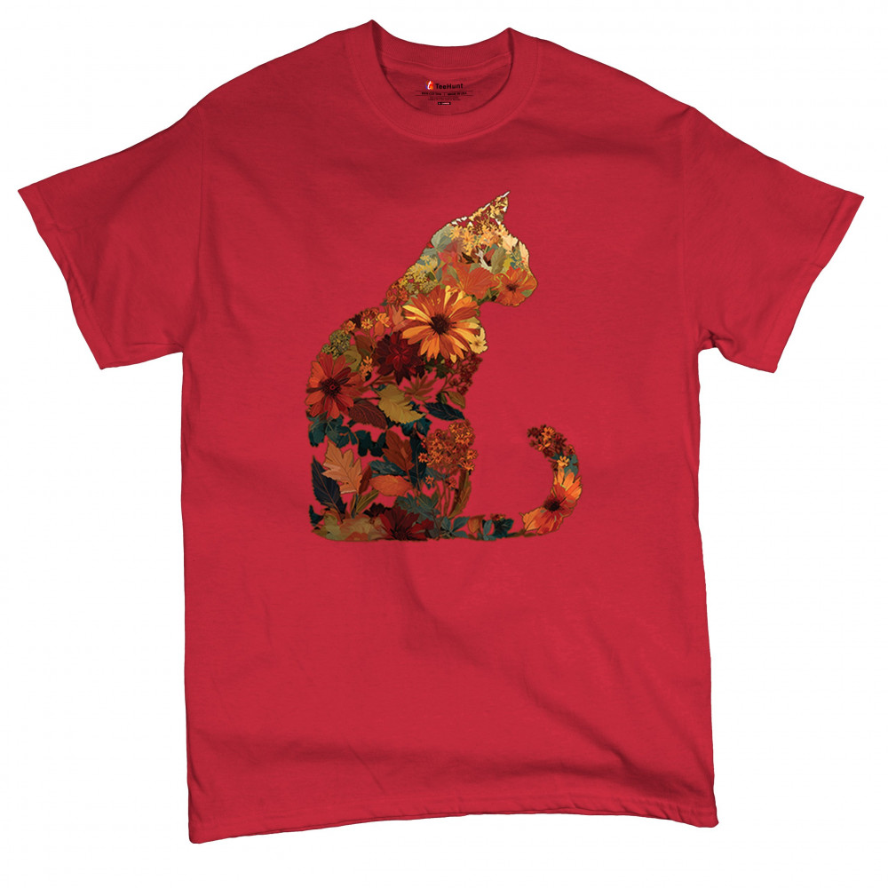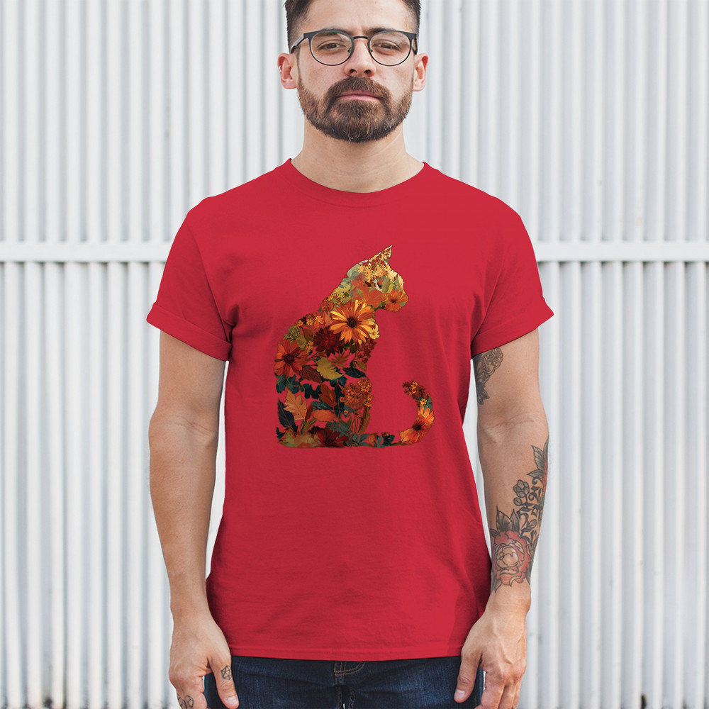 Bring autumn charm to your wardrobe with this cozy cat design filled with fall leaves and florals. Perfect for pet lovers, rustic farmhouse style, pumpkin patch outings, and fall festivals, it’s a unique way to showcase both your love of cats and seasonal harvest vibes.