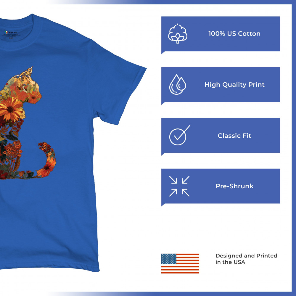 Bring autumn charm to your wardrobe with this cozy cat design filled with fall leaves and florals. Perfect for pet lovers, rustic farmhouse style, pumpkin patch outings, and fall festivals, it’s a unique way to showcase both your love of cats and seasonal harvest vibes.