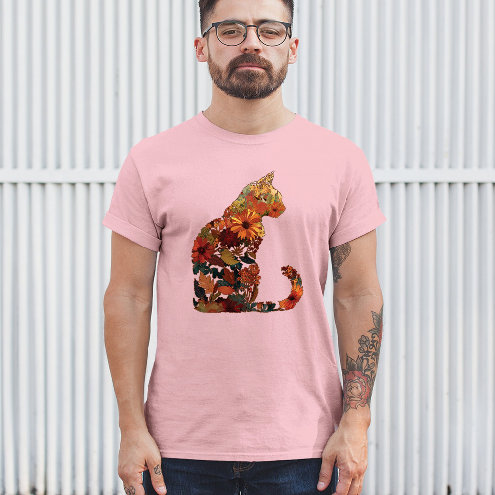 Bring autumn charm to your wardrobe with this cozy cat design filled with fall leaves and florals. Perfect for pet lovers, rustic farmhouse style, pumpkin patch outings, and fall festivals, it’s a unique way to showcase both your love of cats and seasonal harvest vibes.