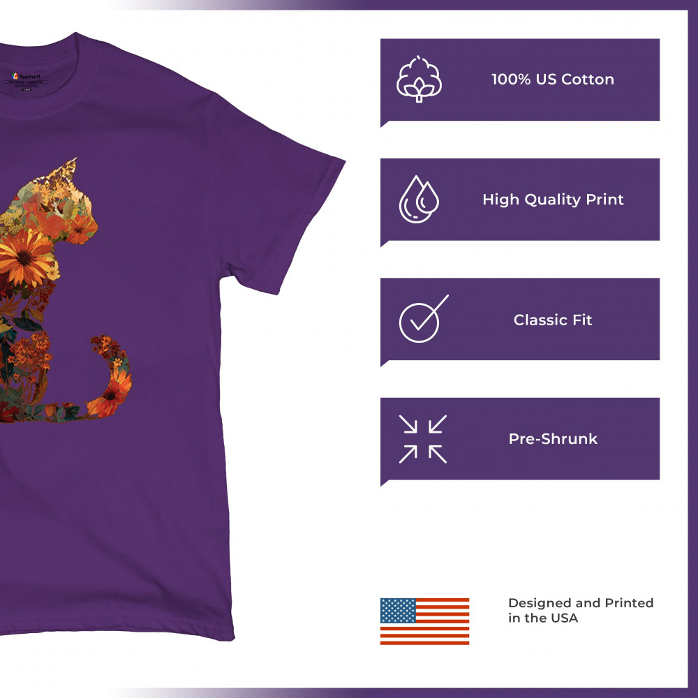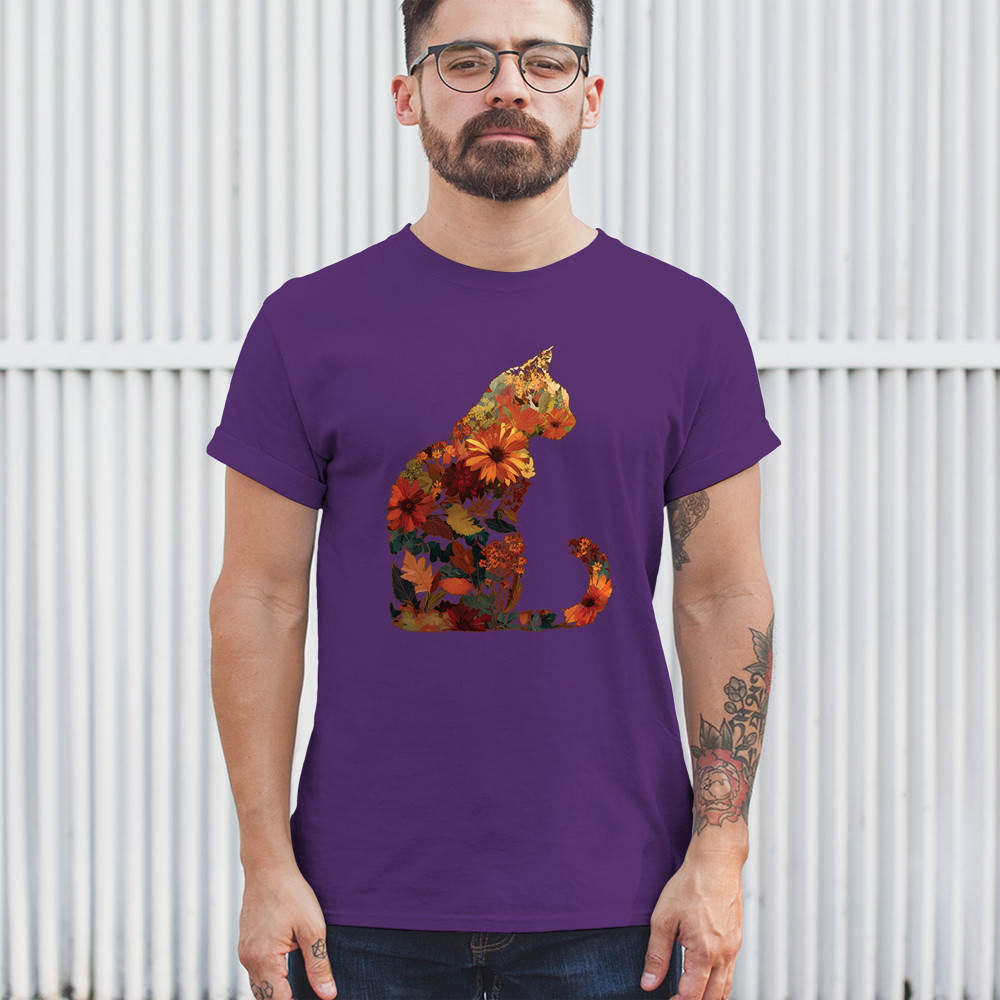 Bring autumn charm to your wardrobe with this cozy cat design filled with fall leaves and florals. Perfect for pet lovers, rustic farmhouse style, pumpkin patch outings, and fall festivals, it’s a unique way to showcase both your love of cats and seasonal harvest vibes.