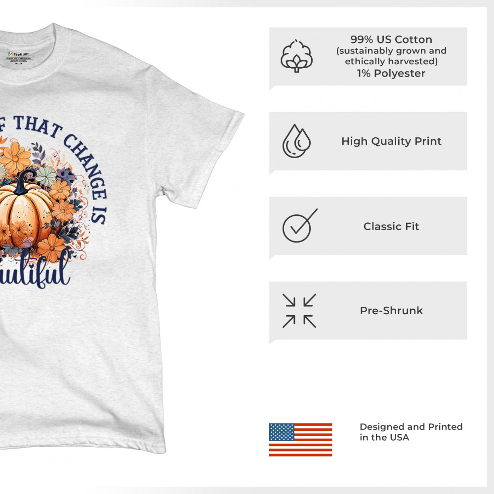 Bring autumn style to life with this floral pumpkin patch design. Perfect for Thanksgiving, harvest festival outings, and cozy farmhouse gatherings, it features pumpkins and wildflowers in rich fall tones. A seasonal pumpkin shirt that captures the warmth of autumn and the beauty of change.