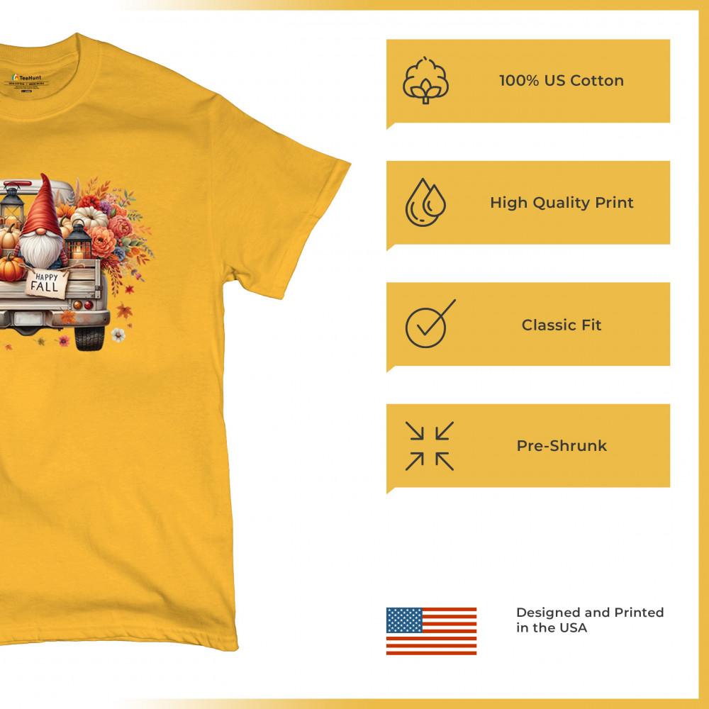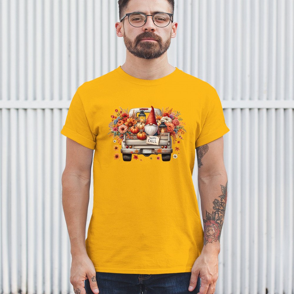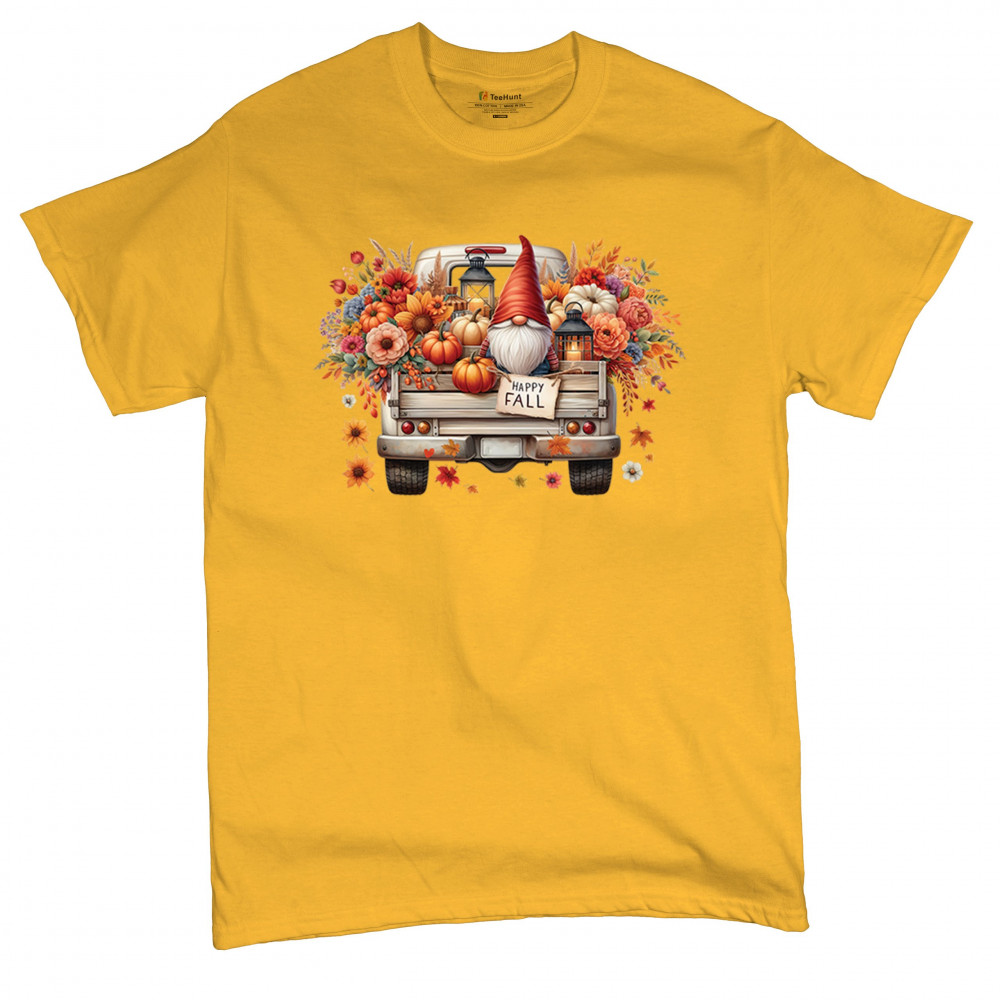 Bring fall charm into your wardrobe with this rustic gnome truck design. Overflowing with pumpkins, wildflowers, and a glowing lantern, it’s perfect for Thanksgiving, farmhouse gatherings, harvest festivals, and celebrating the floral autumn season in cozy style.