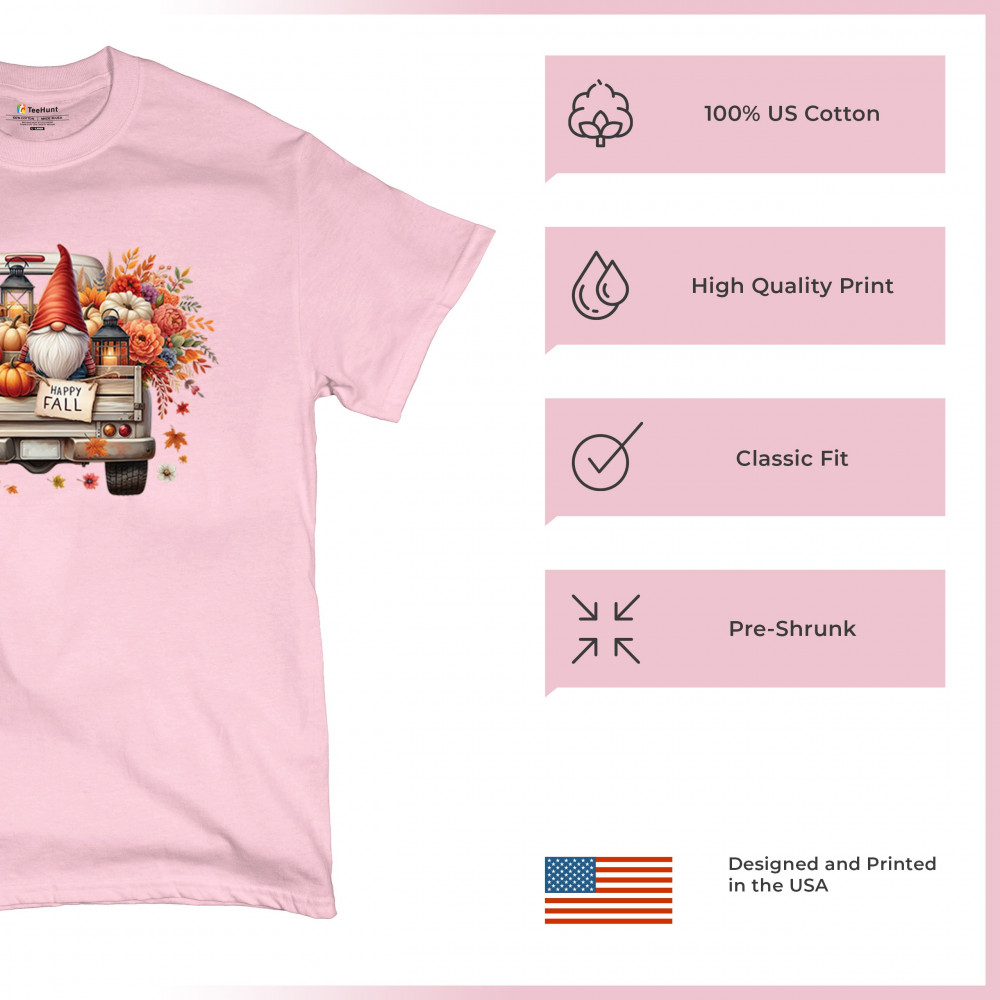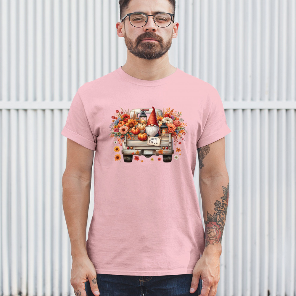 Bring fall charm into your wardrobe with this rustic gnome truck design. Overflowing with pumpkins, wildflowers, and a glowing lantern, it’s perfect for Thanksgiving, farmhouse gatherings, harvest festivals, and celebrating the floral autumn season in cozy style.
