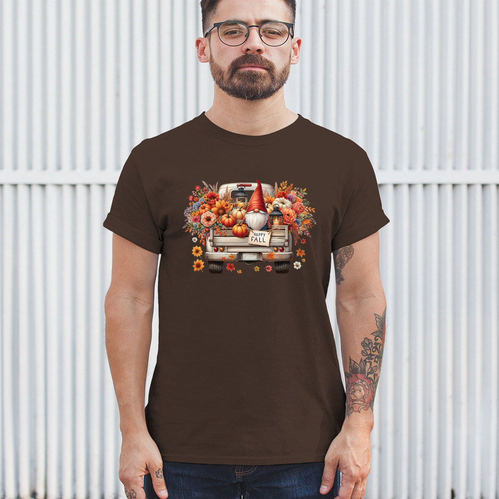 Bring fall charm into your wardrobe with this rustic gnome truck design. Overflowing with pumpkins, wildflowers, and a glowing lantern, it’s perfect for Thanksgiving, farmhouse gatherings, harvest festivals, and celebrating the floral autumn season in cozy style.