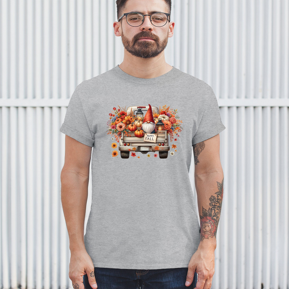 Bring fall charm into your wardrobe with this rustic gnome truck design. Overflowing with pumpkins, wildflowers, and a glowing lantern, it’s perfect for Thanksgiving, farmhouse gatherings, harvest festivals, and celebrating the floral autumn season in cozy style.