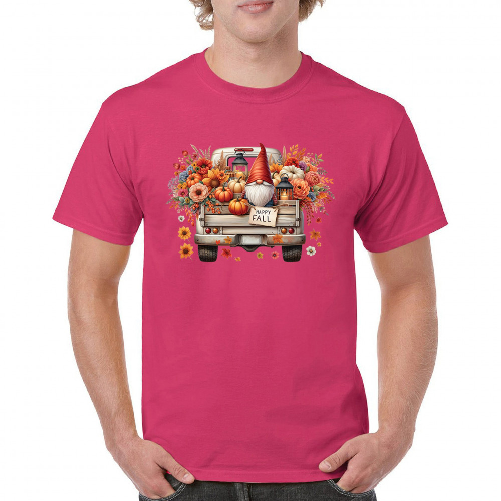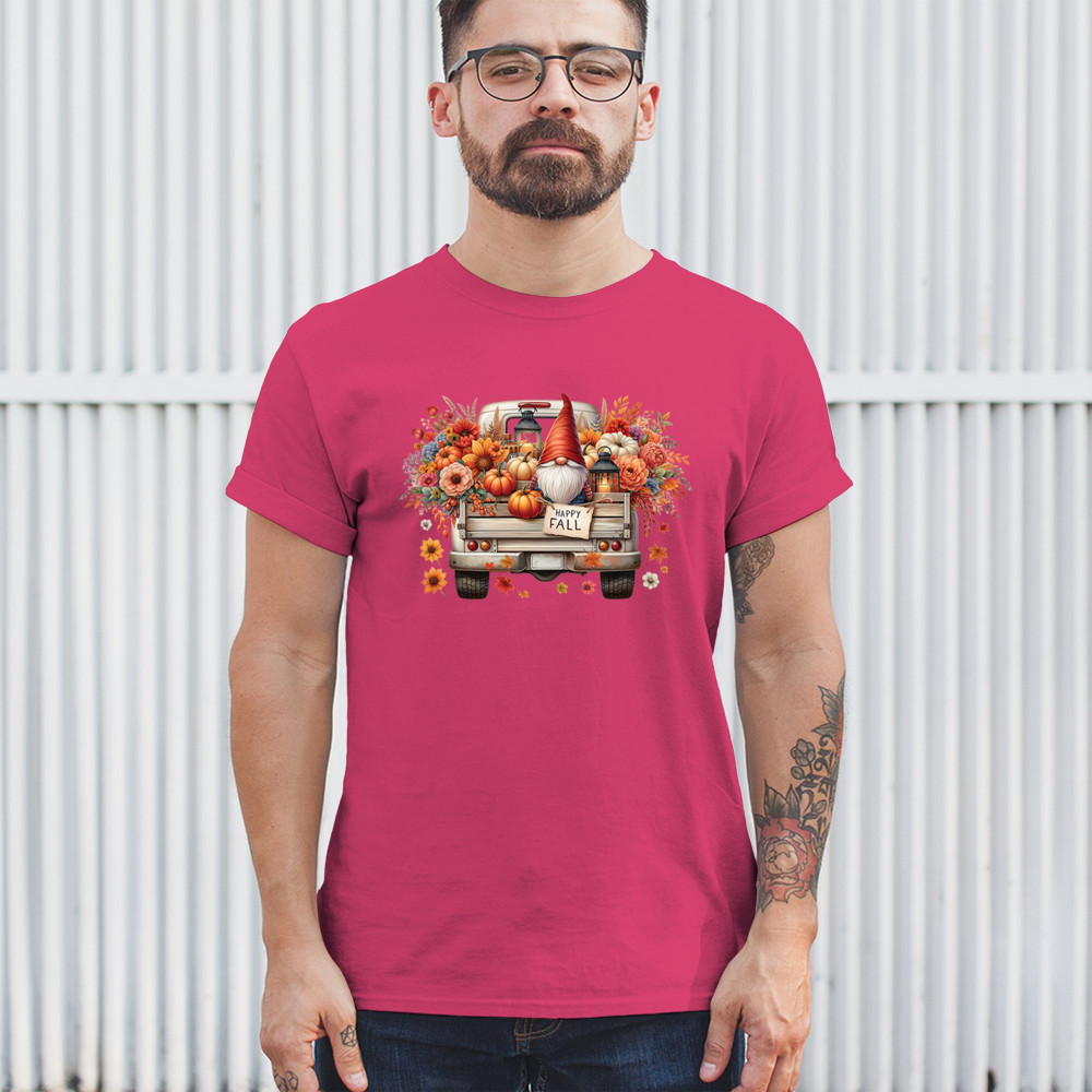 Bring fall charm into your wardrobe with this rustic gnome truck design. Overflowing with pumpkins, wildflowers, and a glowing lantern, it’s perfect for Thanksgiving, farmhouse gatherings, harvest festivals, and celebrating the floral autumn season in cozy style.