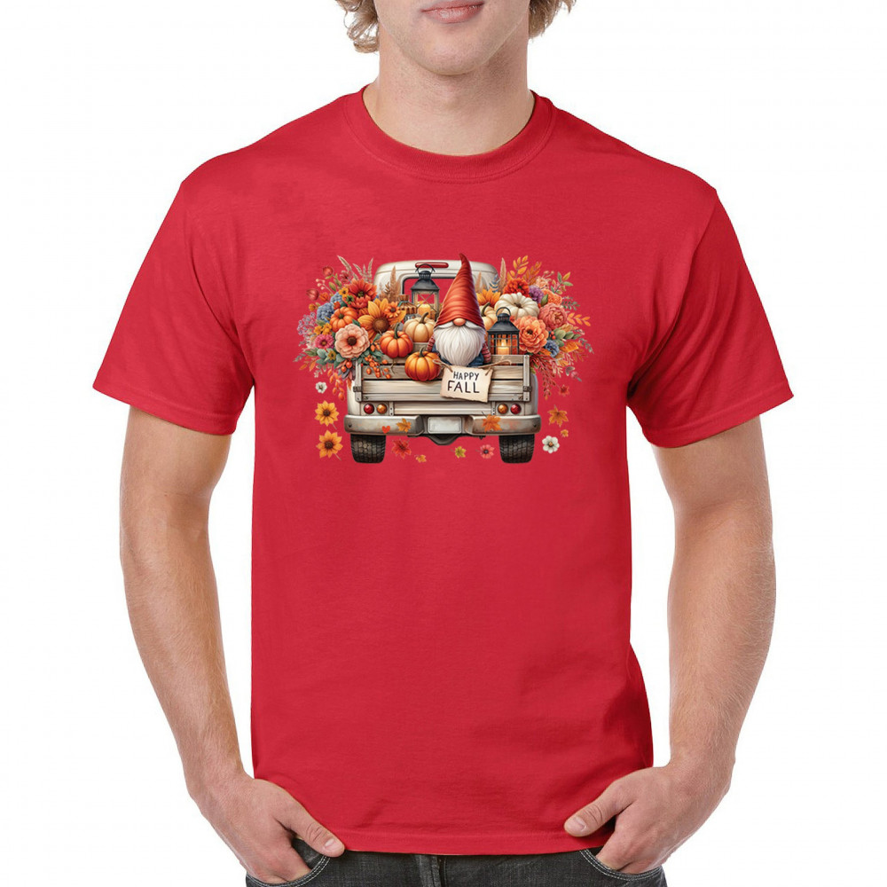Rustic gnome truck design with pumpkins, wildflowers, and lantern glow. Perfect for Thanksgiving Day, farmhouse harvest, and cozy autumn style.