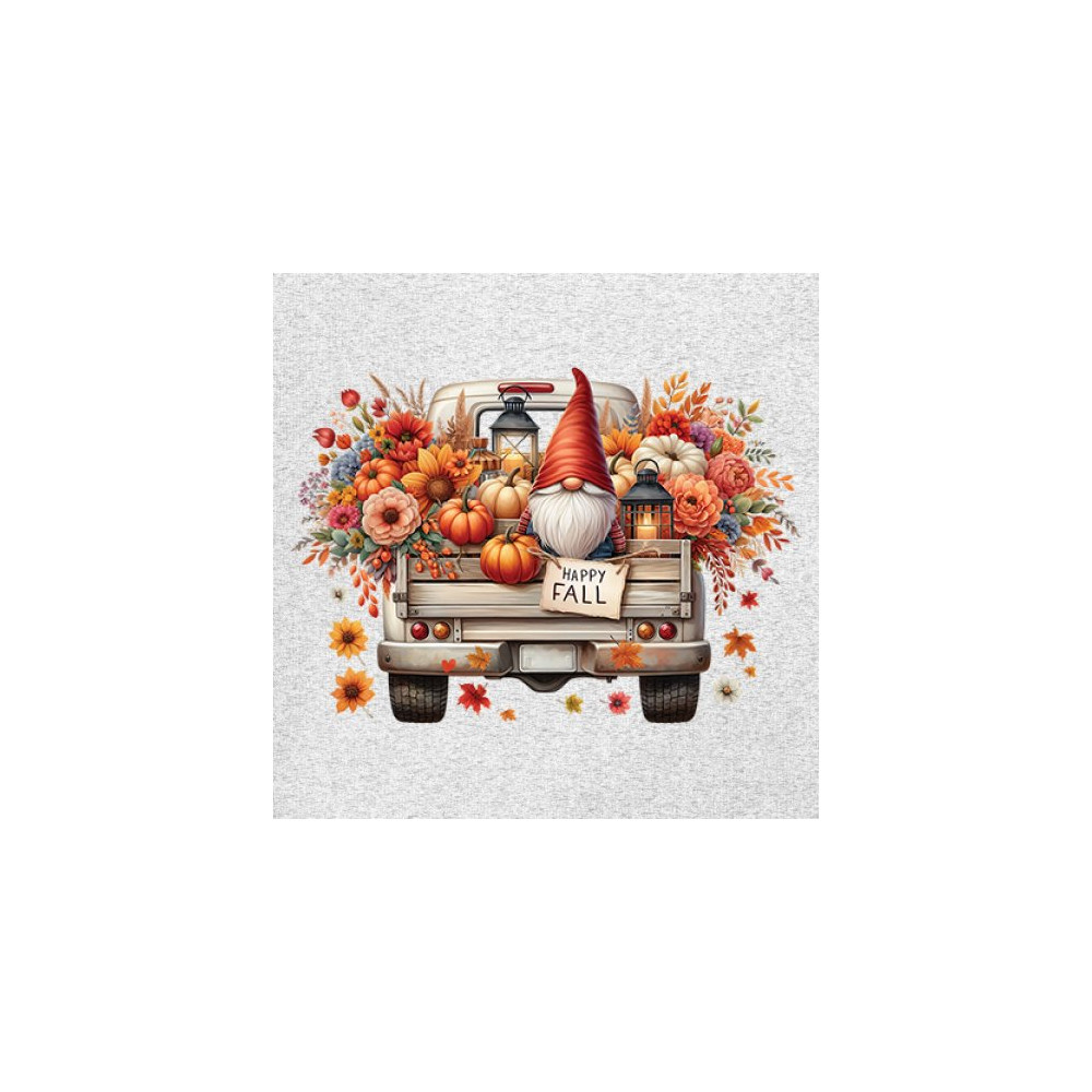 Rustic gnome truck design with pumpkins, wildflowers, and lantern glow. Perfect for Thanksgiving Day, farmhouse harvest, and cozy autumn style.