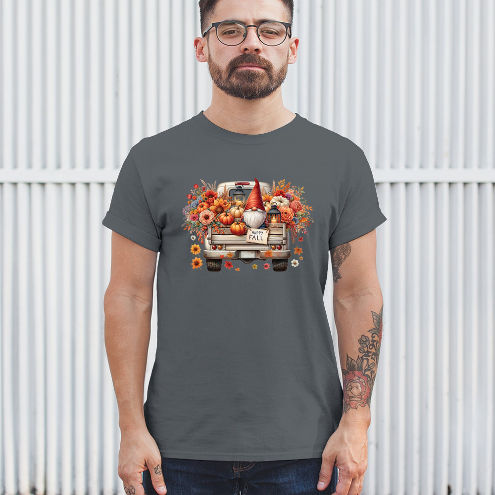 Bring fall charm into your wardrobe with this rustic gnome truck design. Overflowing with pumpkins, wildflowers, and a glowing lantern, it’s perfect for Thanksgiving, farmhouse gatherings, harvest festivals, and celebrating the floral autumn season in cozy style.