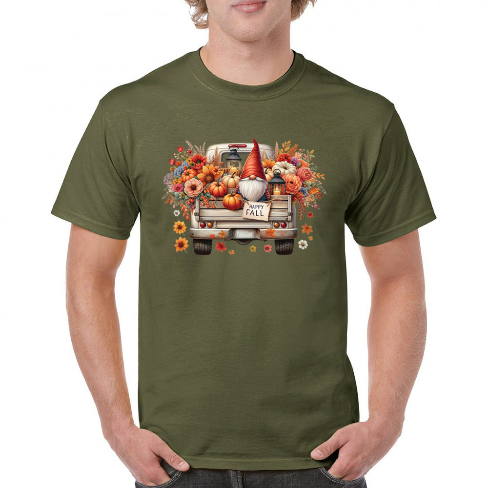 Bring fall charm into your wardrobe with this rustic gnome truck design. Overflowing with pumpkins, wildflowers, and a glowing lantern, it’s perfect for Thanksgiving, farmhouse gatherings, harvest festivals, and celebrating the floral autumn season in cozy style.