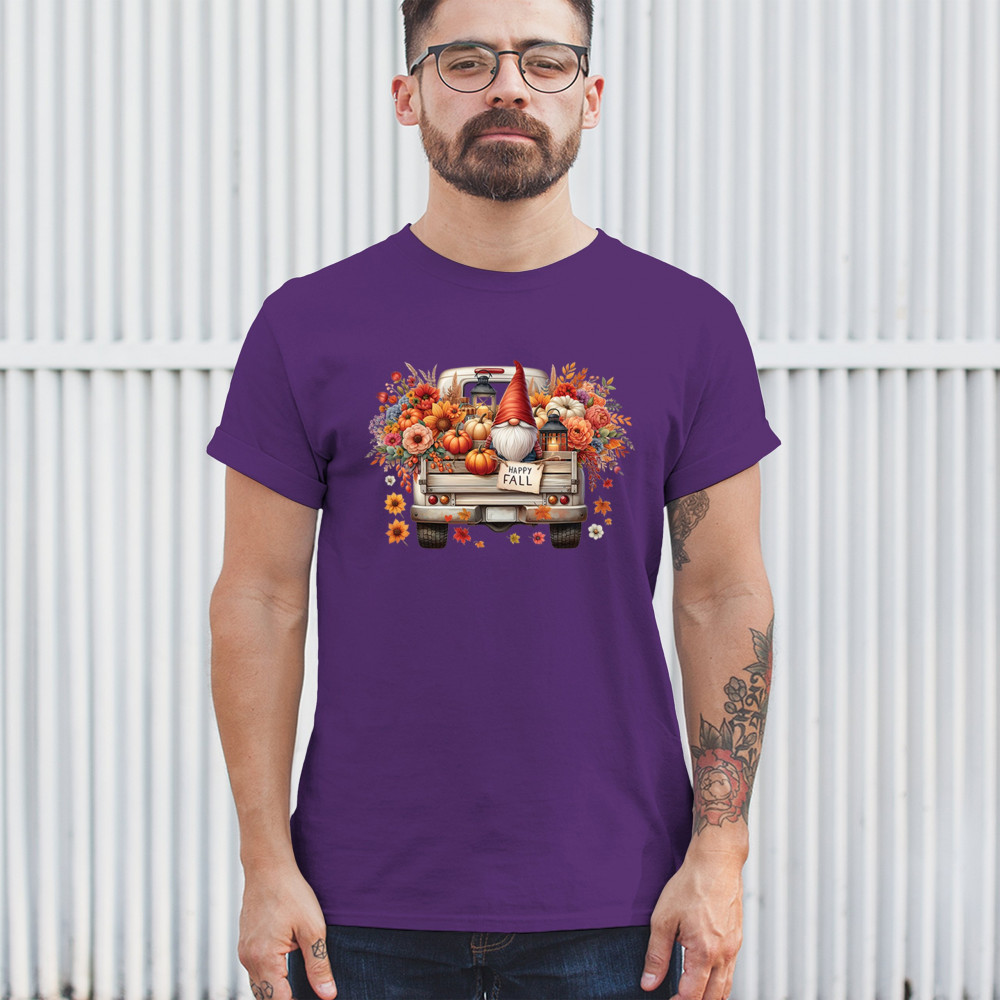 Bring fall charm into your wardrobe with this rustic gnome truck design. Overflowing with pumpkins, wildflowers, and a glowing lantern, it’s perfect for Thanksgiving, farmhouse gatherings, harvest festivals, and celebrating the floral autumn season in cozy style.