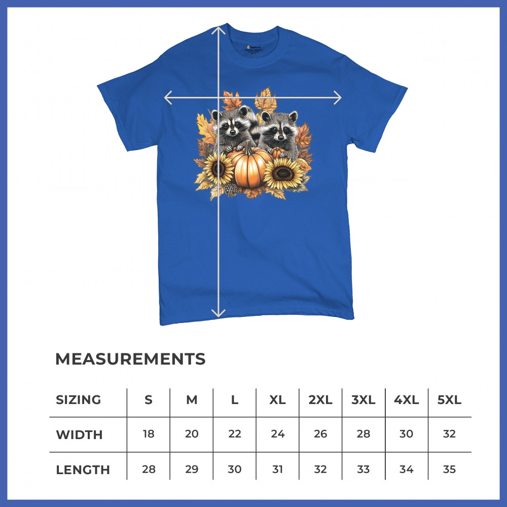 Rustic autumn raccoon design with pumpkins and sunflowers. Perfect for Thanksgiving, pumpkin patch days, farmhouse harvest, and woodland fall fashion.