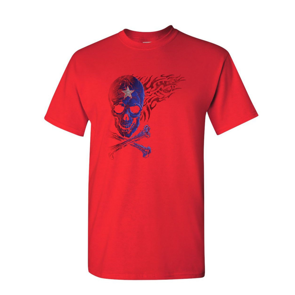SKULL FACE WITH CROSSBONES fantacycle skull crossbones t-shirt american pride tribal flame mens tee shirt red