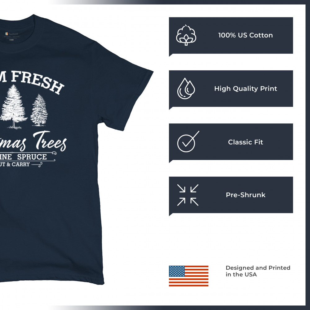 Add a nostalgic touch to your holiday celebrations with this "Farm Fresh Christmas Trees" design. Featuring fir, pine, and spruce trees, it’s ideal for Christmas lovers, matching family pajamas, or even festive gatherings. Perfect for cozy holiday mornings, Secret Santa gifts, or holiday office parties, this design brings a touch of rustic charm to any setting. Capture the spirit of the season with this delightful holiday print, designed to spread cheer and warmth.