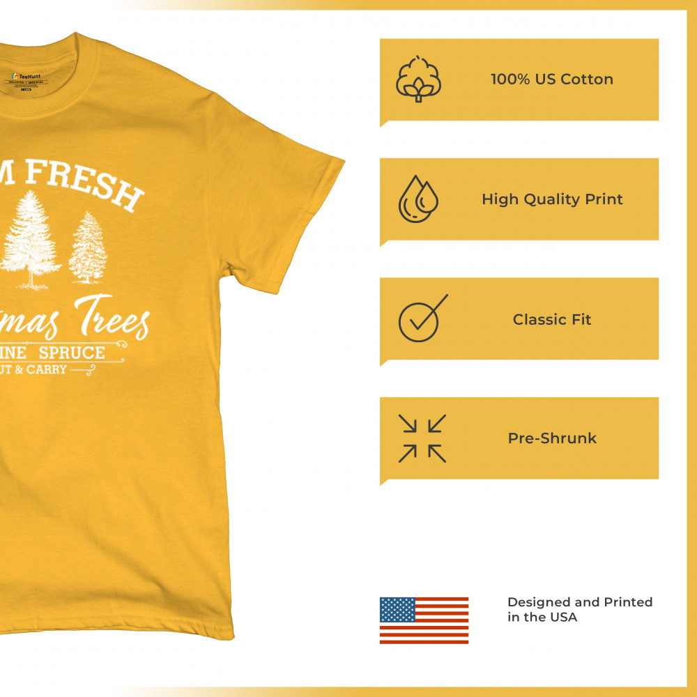 Add a nostalgic touch to your holiday celebrations with this "Farm Fresh Christmas Trees" design. Featuring fir, pine, and spruce trees, it’s ideal for Christmas lovers, matching family pajamas, or even festive gatherings. Perfect for cozy holiday mornings, Secret Santa gifts, or holiday office parties, this design brings a touch of rustic charm to any setting. Capture the spirit of the season with this delightful holiday print, designed to spread cheer and warmth.