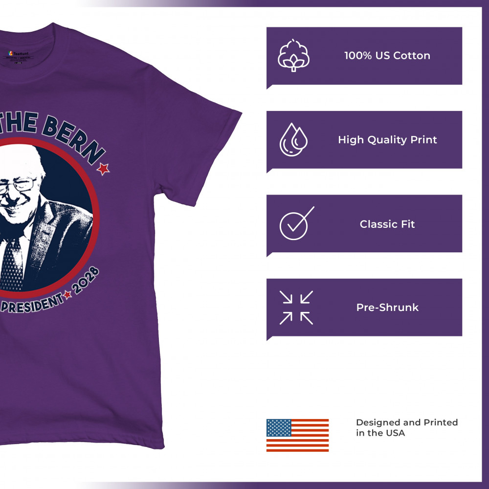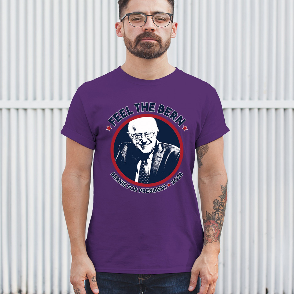 Show your commitment to democratic reform with this "Feel the Bern – Bernie for President 2028" design. Featuring Bernie Sanders’ portrait and patriotic colors, it’s perfect for political events, marches, or campaign volunteering. Wear it with pride at rallies, protests, or voter registration drives to back the progressive movement.